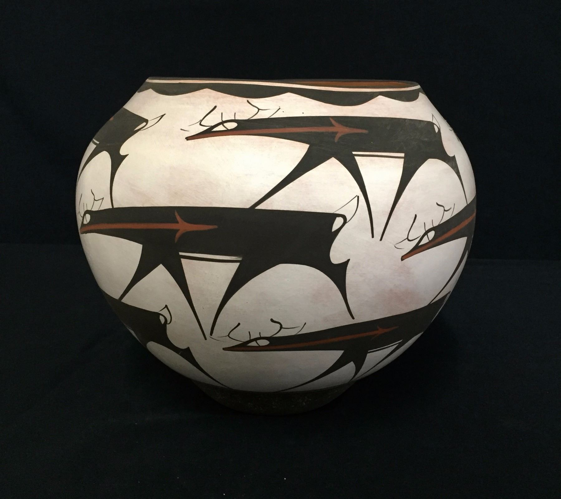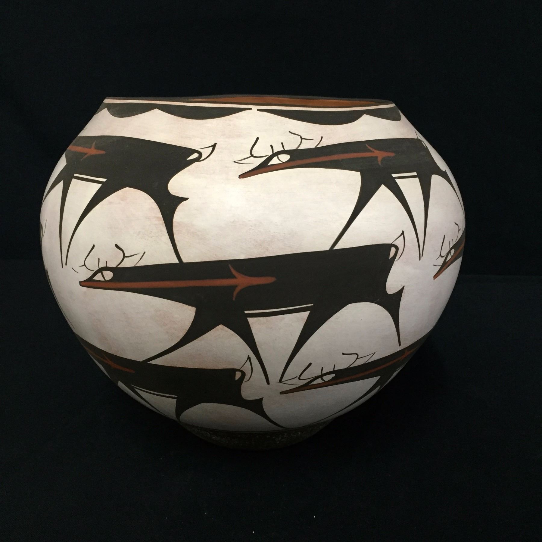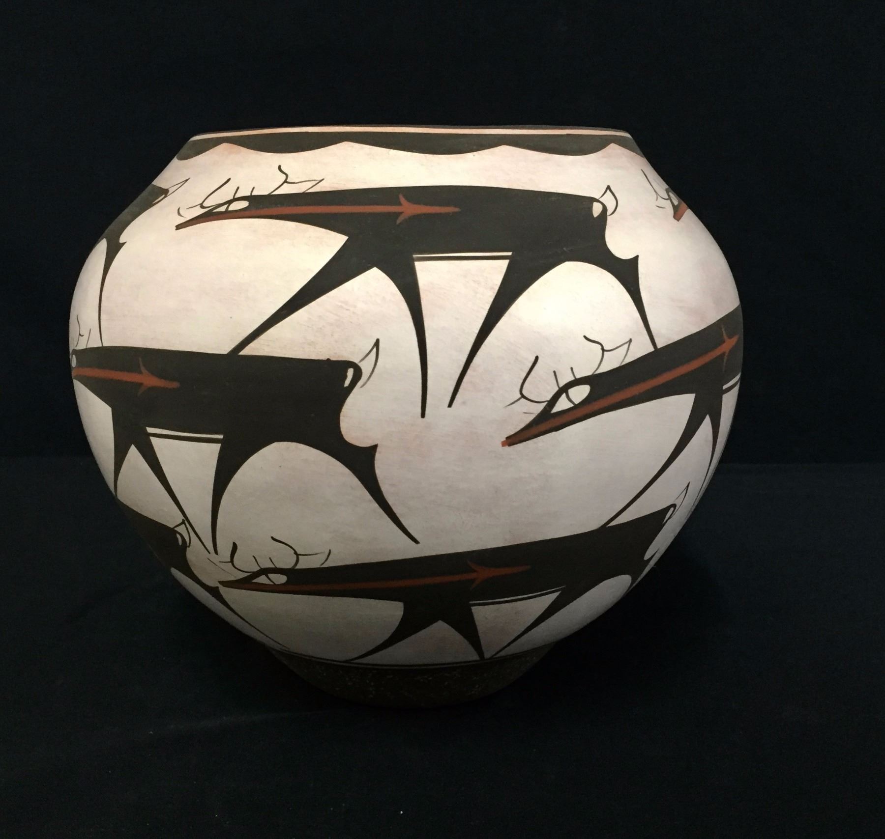 Maker: Anderson Peynetsa, Zuni. Approx. Age: 1999. Size: Measures 9 1/2” w x 8” tall. Additional Info: A nice, handmade Zuni pot, signed. Condition: Good for it’s age. Please look closely at the pictures - they are an important part of our description. Shipping: There will be a $10 handling / packaging fee for shipping this lot. The actual cost of postage will be added on top of that.