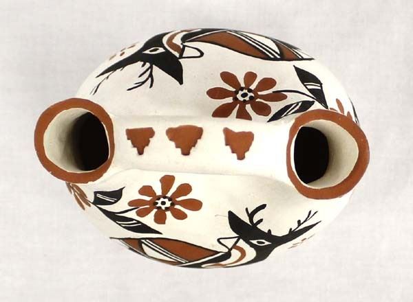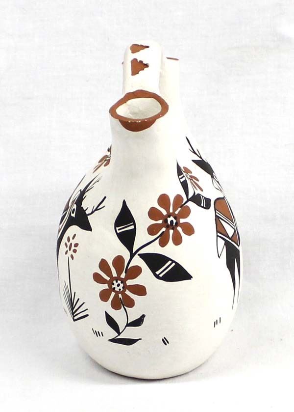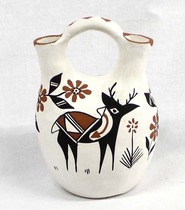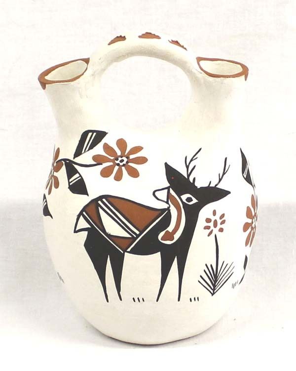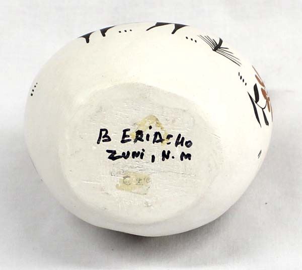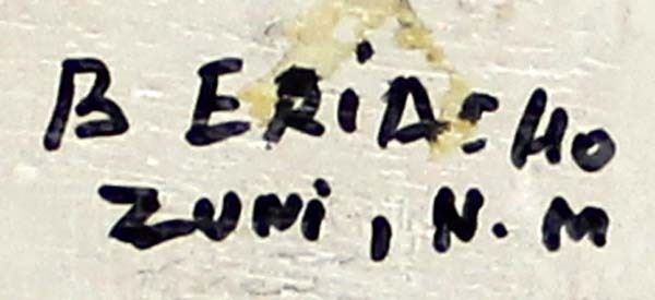 Native American Zuni Pottery Wedding Vase by B. Eriacho, measures 3'' x 6.5'' x 4'' and is signed on the bottom, carved designs on handle