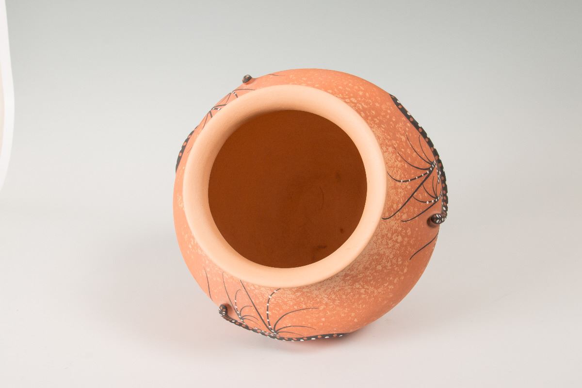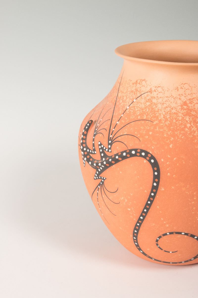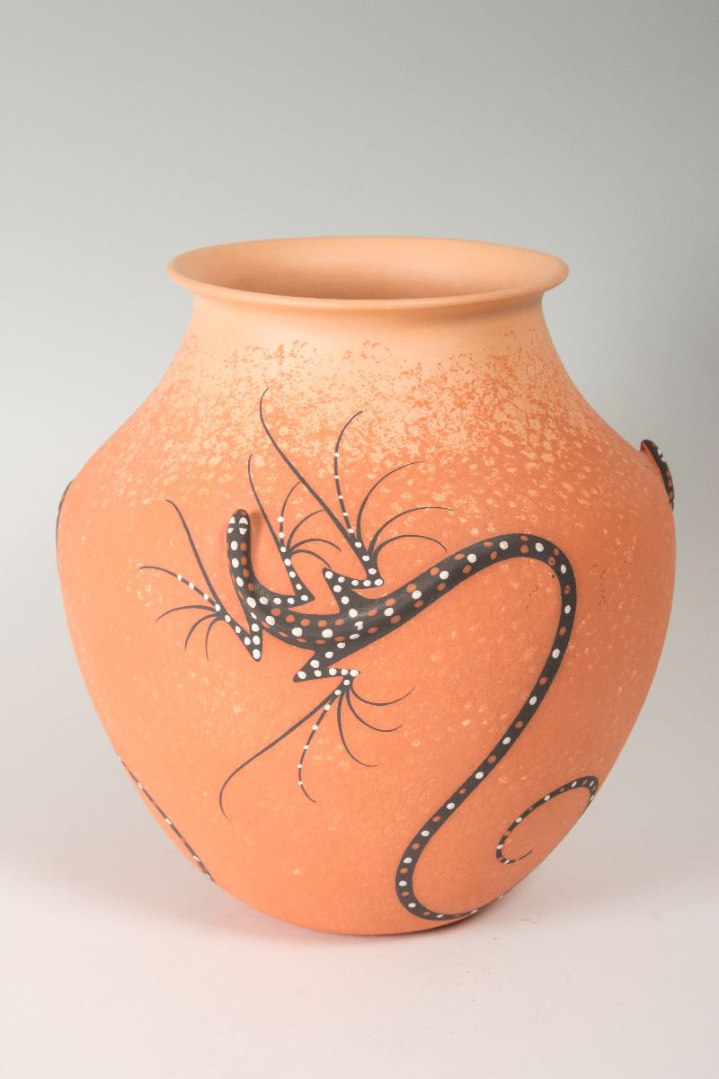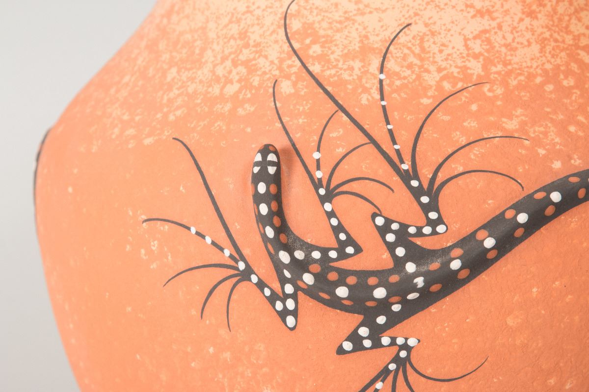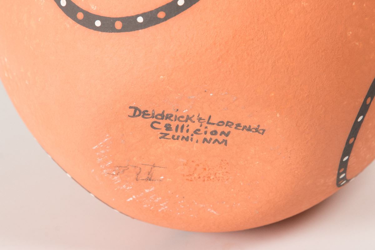 Zuni Pueblo Jar by Deldrick and Lorenda Cellicion. 11" x 11" lizard vase. Signed on bottom: Deldrick and Lorenda Cellicion, Zuni, NM.