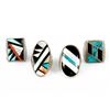 Old Pawn Southwest jewelry, consisting of a miscellaneous grouping of 4 silver, hard stone and turquoise rings. Approximate size: 1 1/4 inches in length largest example. Rings sizes range from approximately: 7 1/2. Approximate total weight: 74 g. g