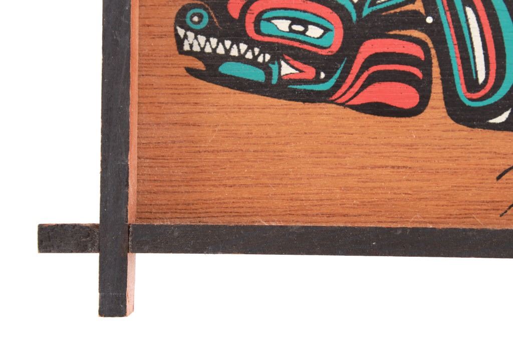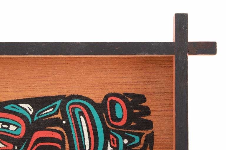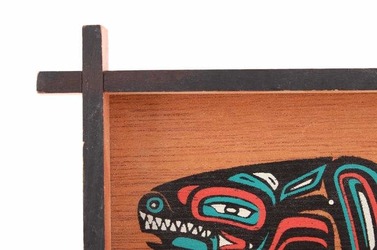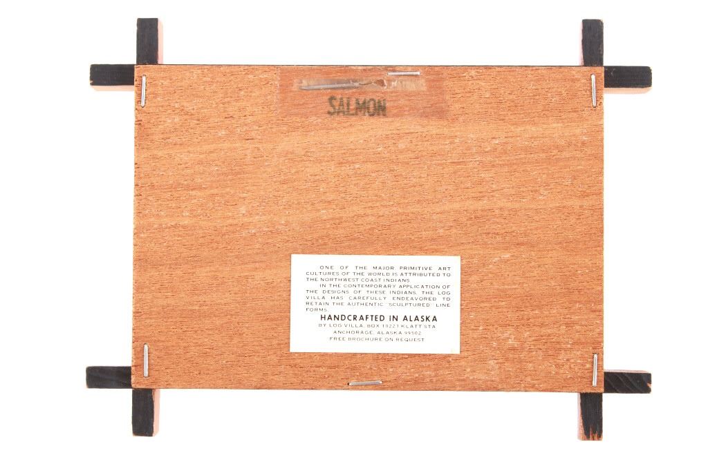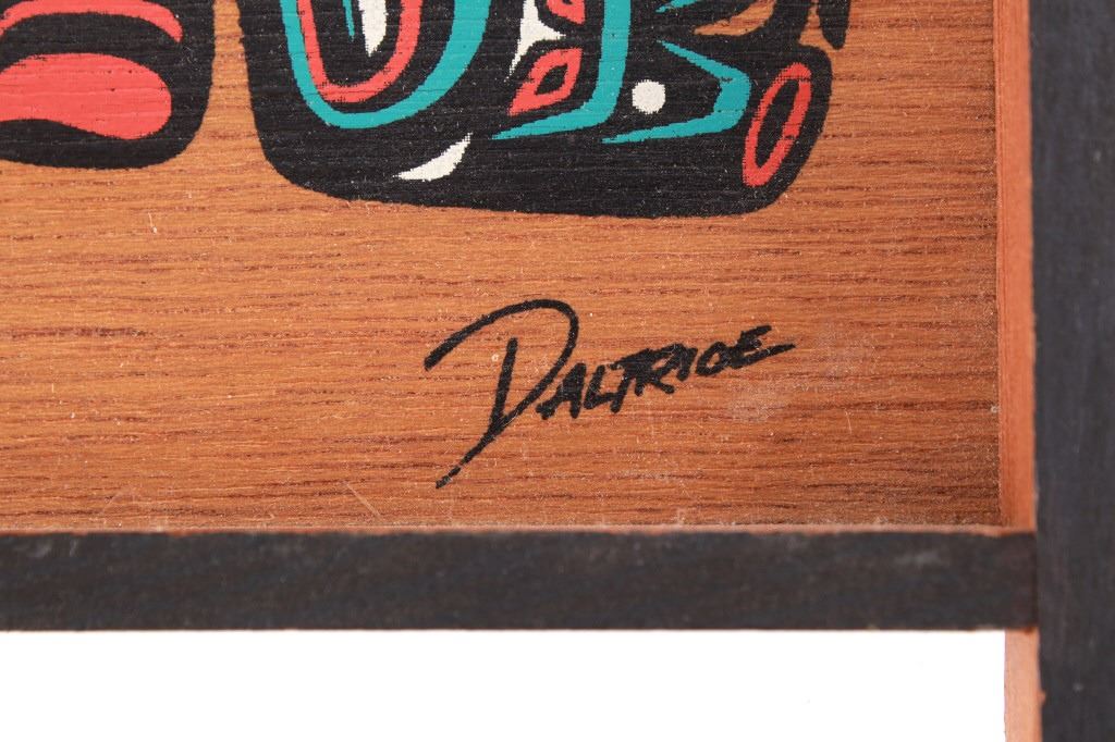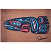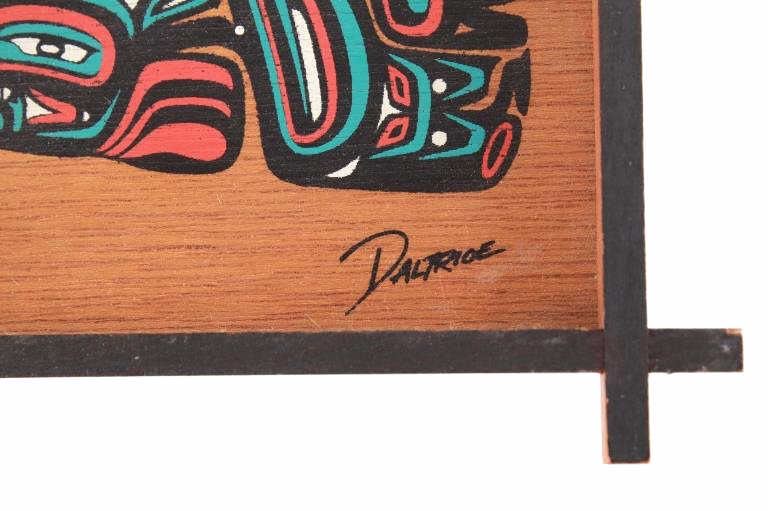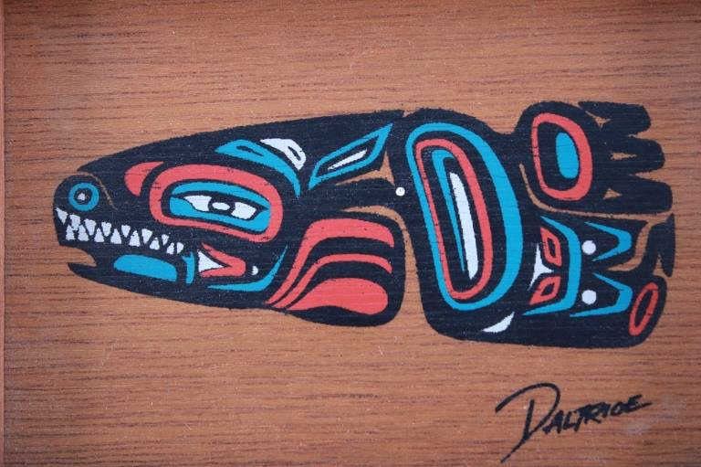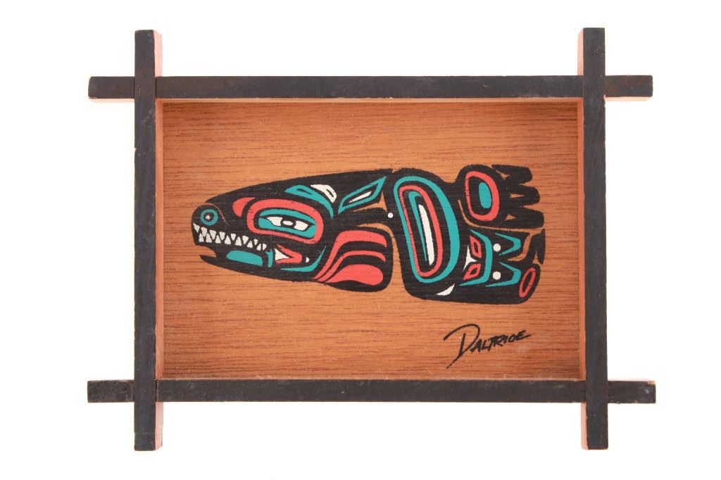 5) and lastly, a signed wall hanging titled, "SALMON", signed DALTRIOE. The design of the salmon is very Native American Haida in the appearance and colours.