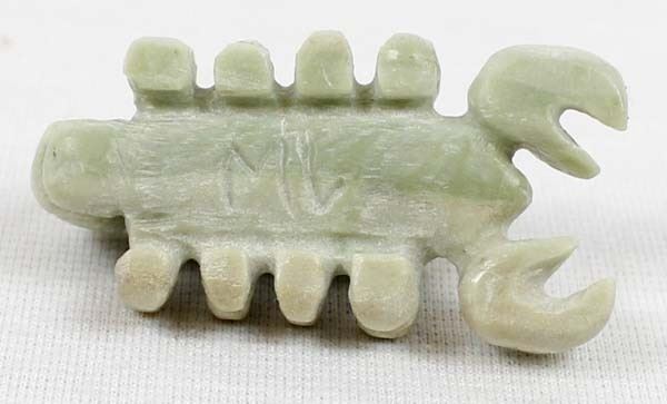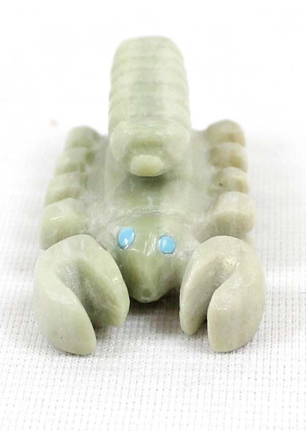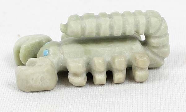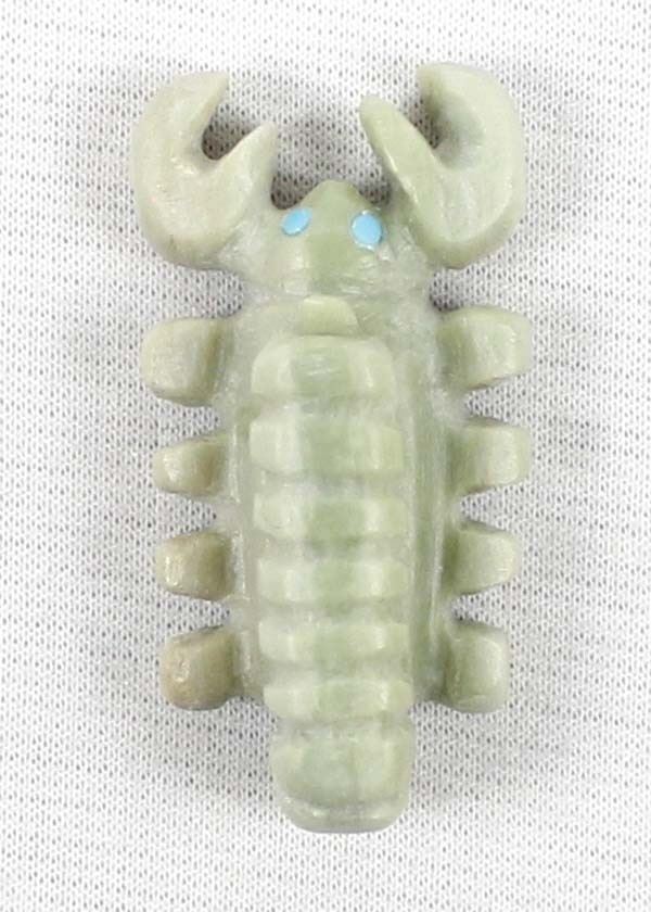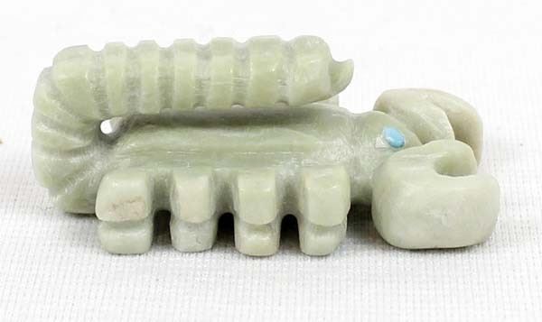 Native American Zuni Scorpion Fetish by Michael Coble, measures 1.5'' x .5'' and has artist's initials on the bottom, turquoise eyes