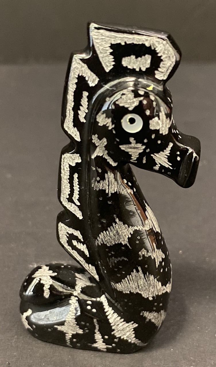 This Beautiful Sea Horse with Mother-of-Pearl Eyes was done by Stevan Natachu. Signed SN. Measures 3.25 inches tall and 1.25 inch long.
