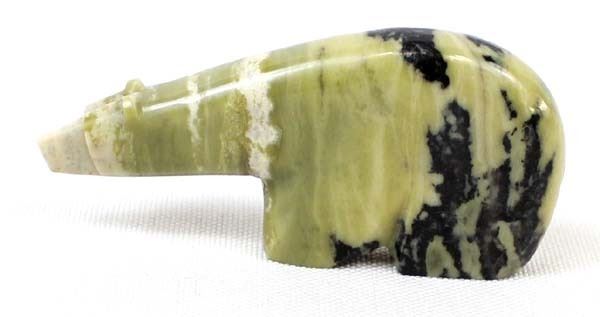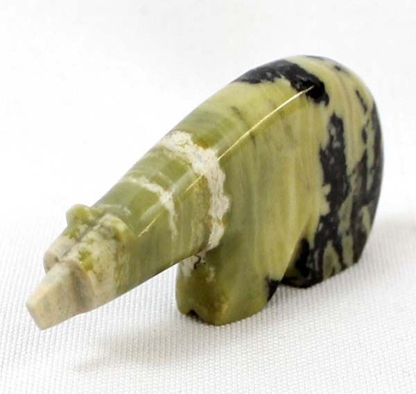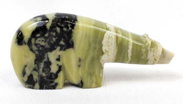 Native American Zuni Serpentine Bear Fetish by Quam, measures 1'' x 2.5'' x .25'', unsigned