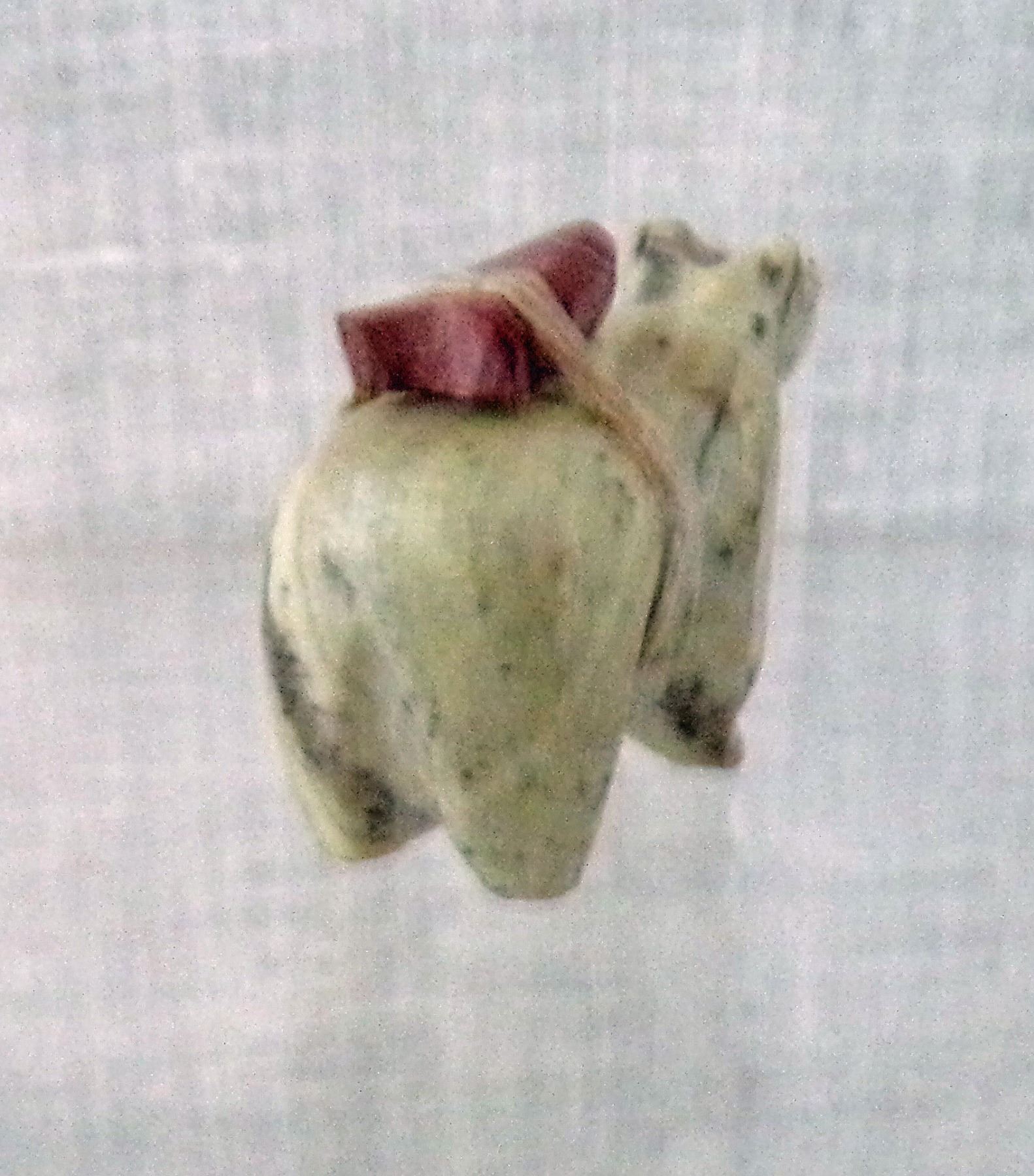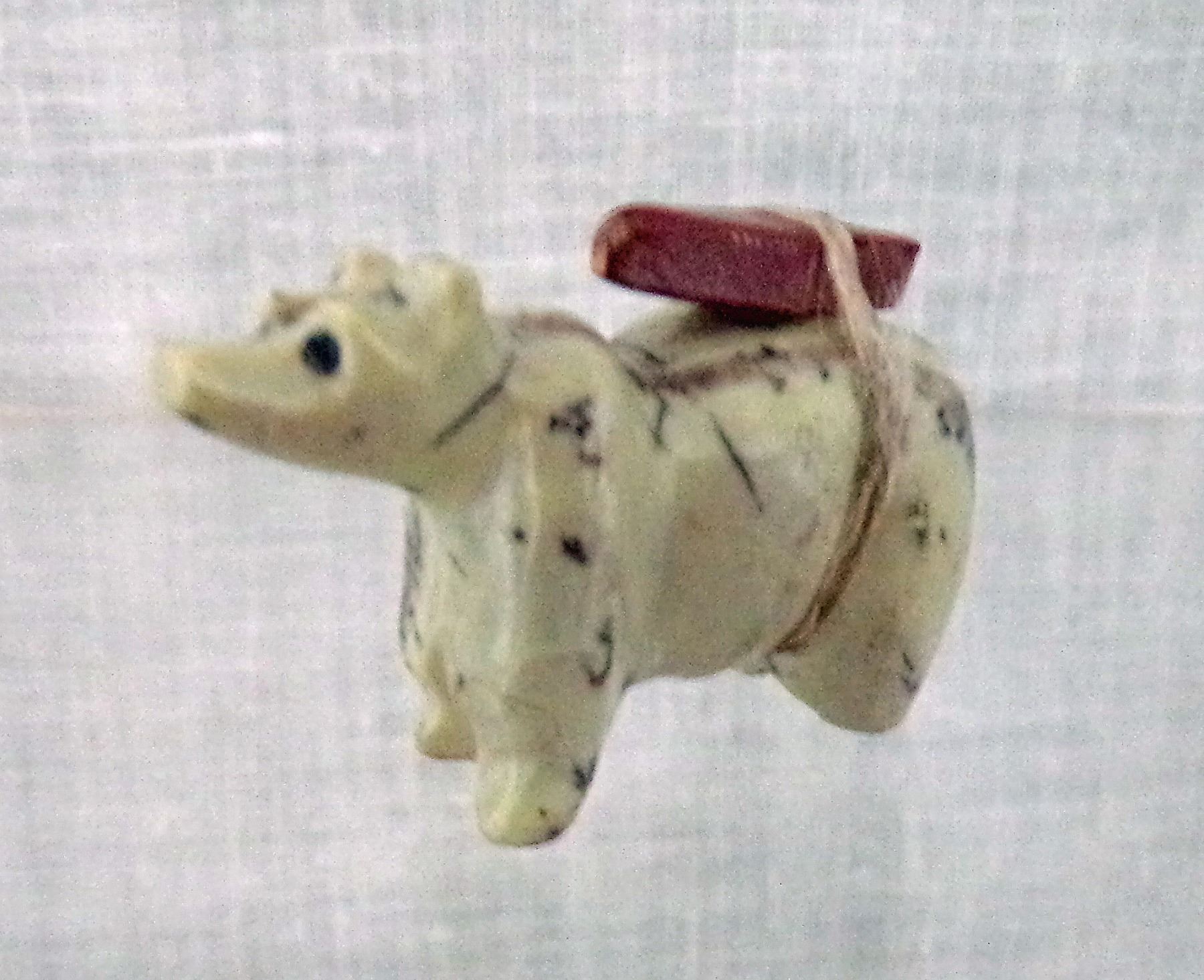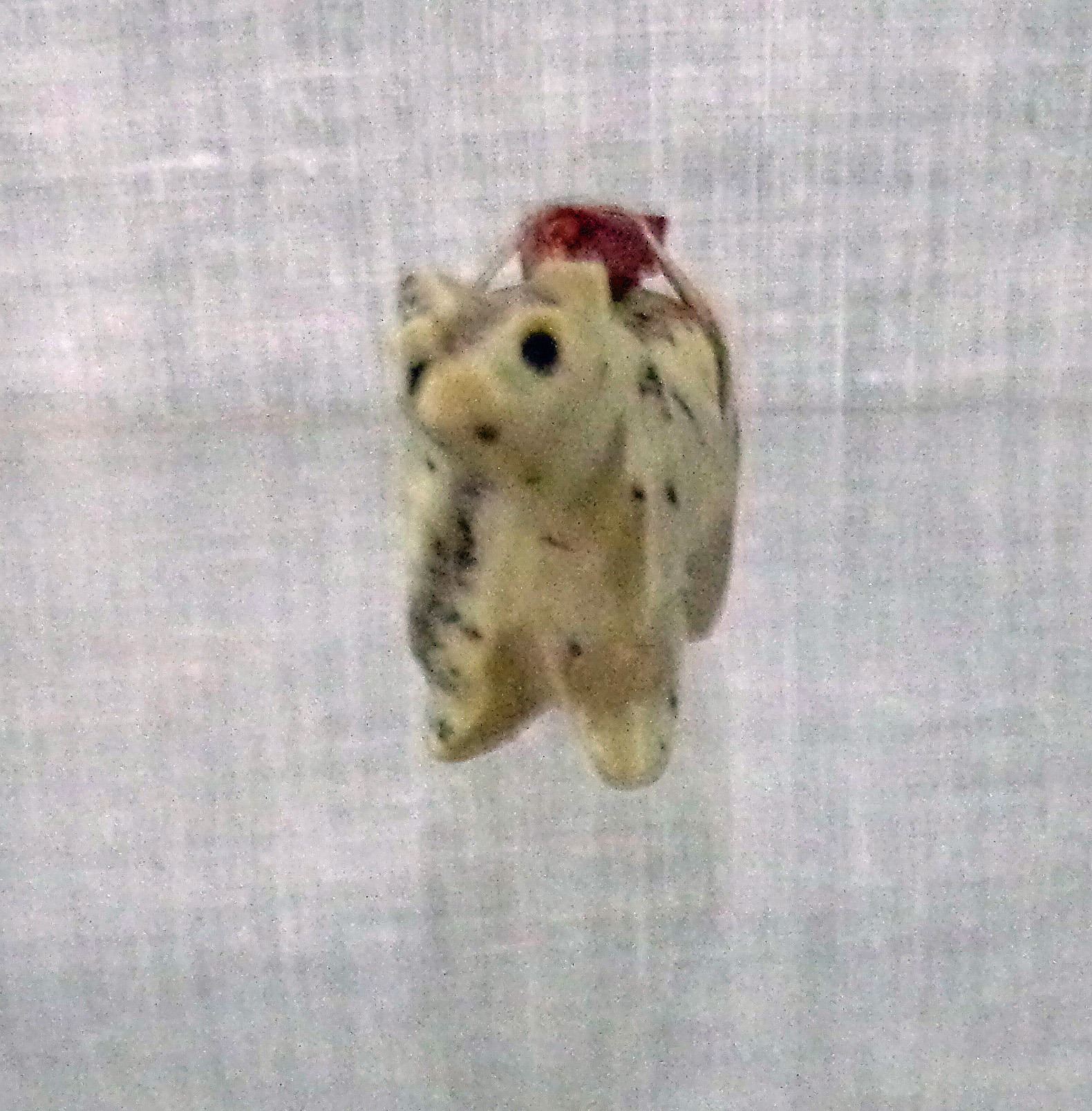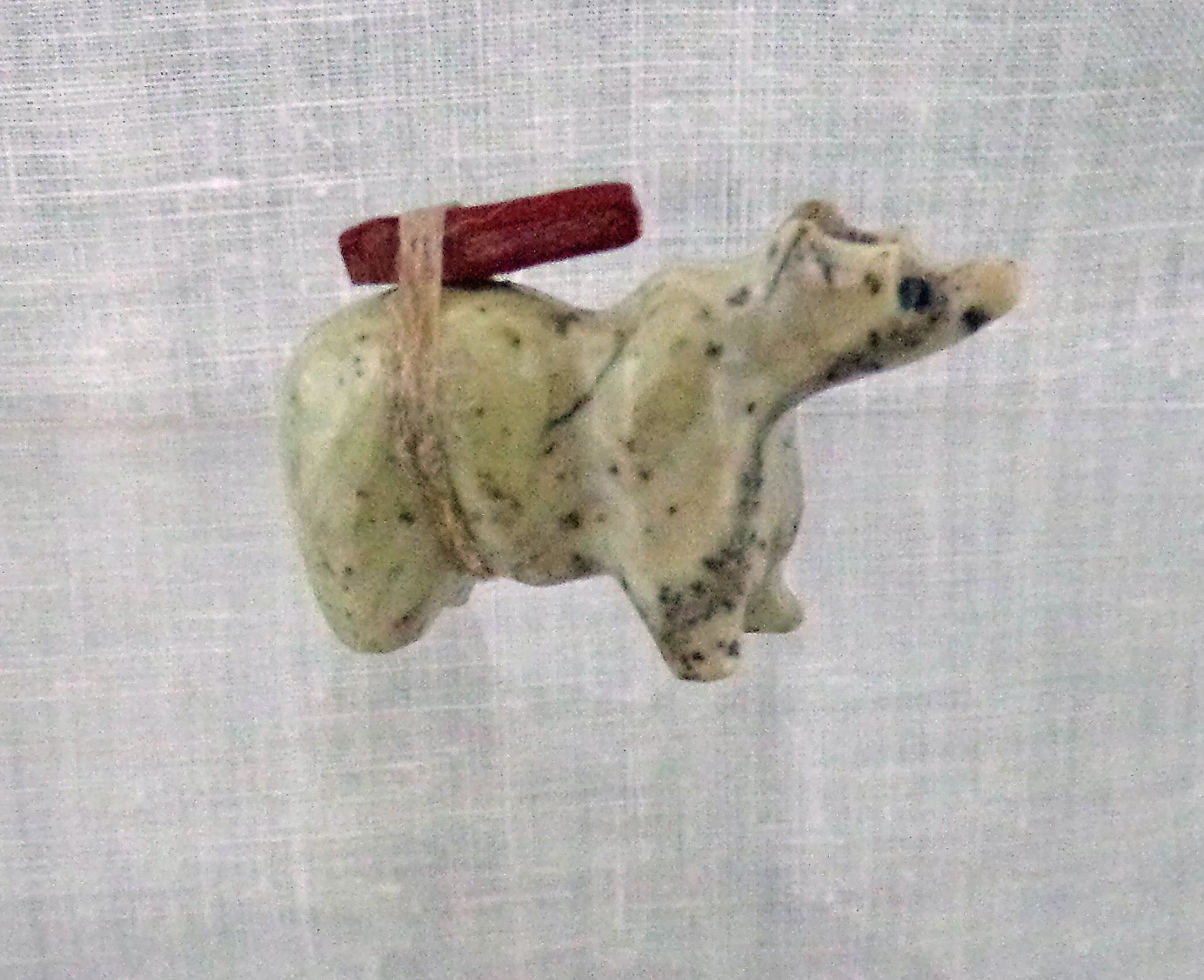 Native American Zuni Serpentine Bear Fetish, measures 1.25'' x .5'' x .75'', carved pipestone arrowhead spirit bundle