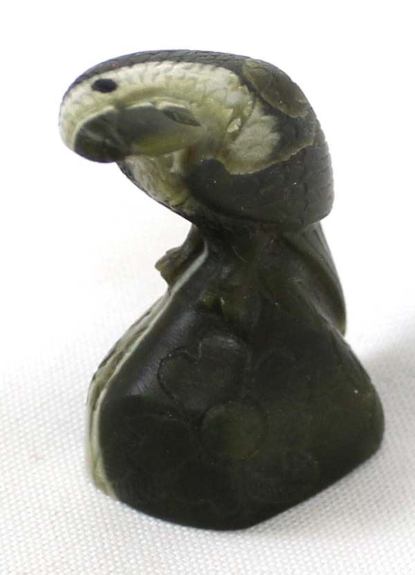 Native American Zuni Serpentine Parrot Fetish by Michael Coble Sr., measures 2'' x 1'' x .5'' and is signed on the bottom, gorgeous stone