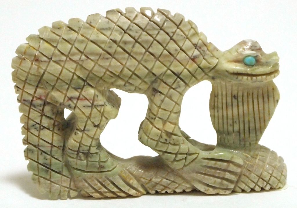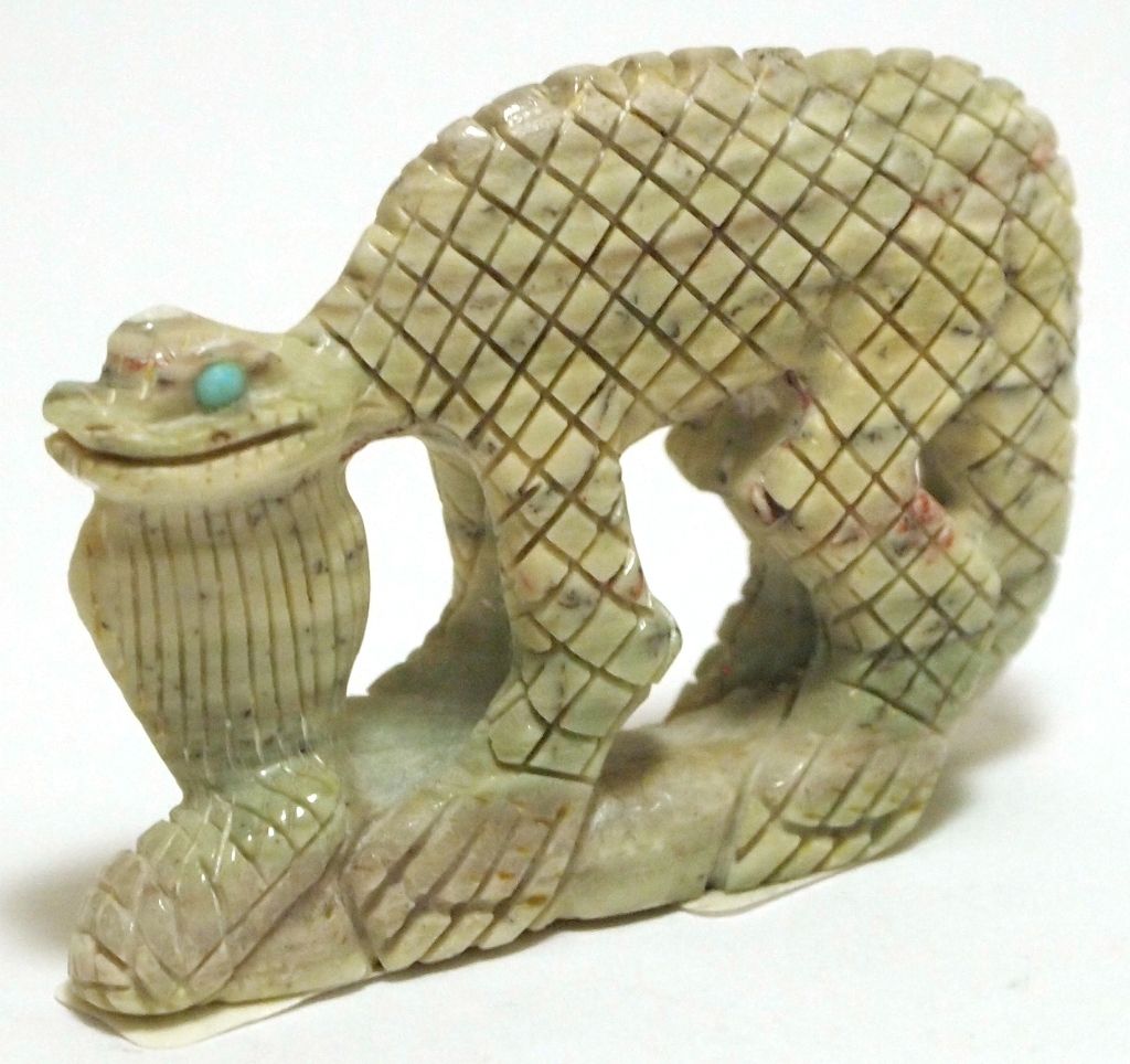 Zuni Serpentine & Turquoise Bearded Lizard Fetish - Bryan Lastyone