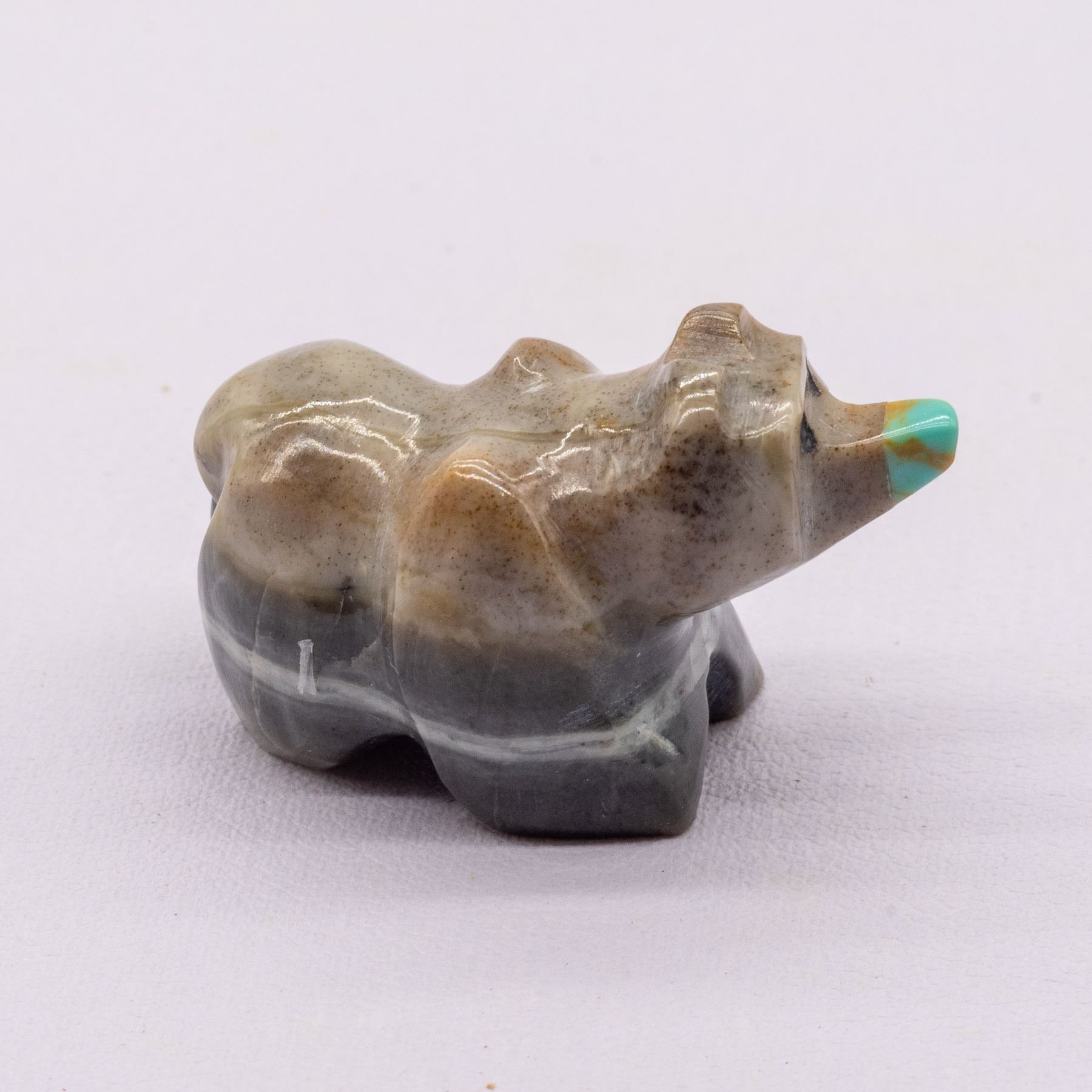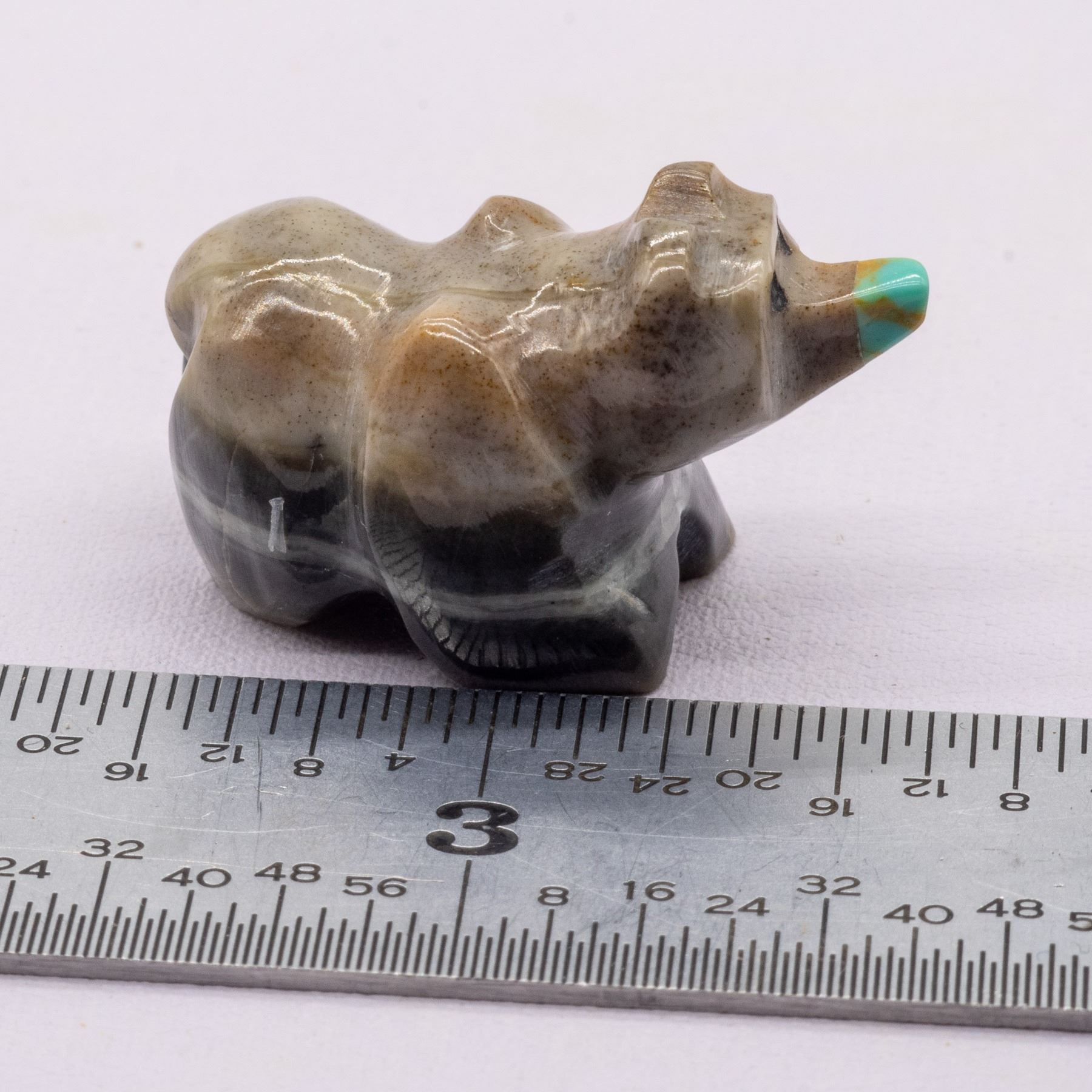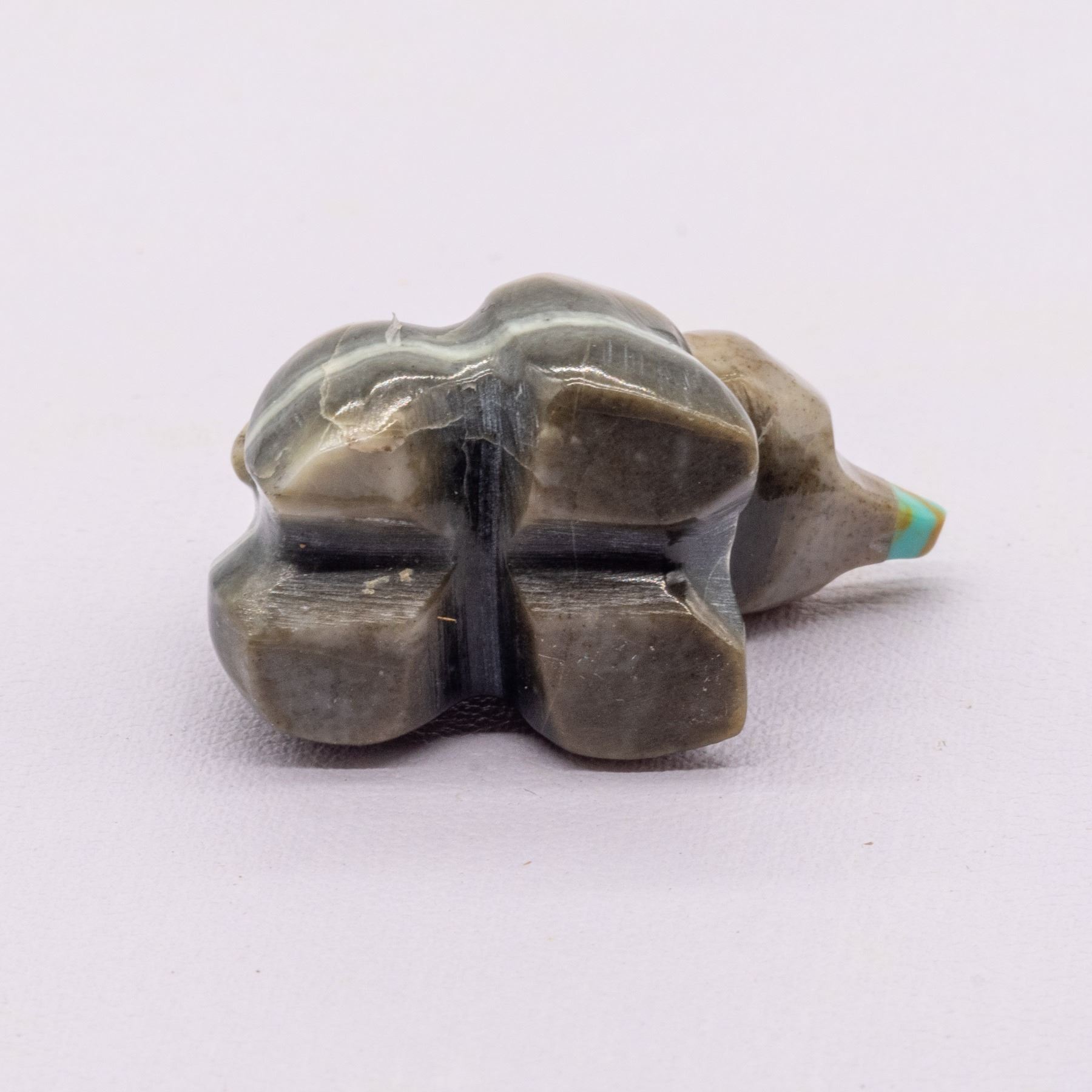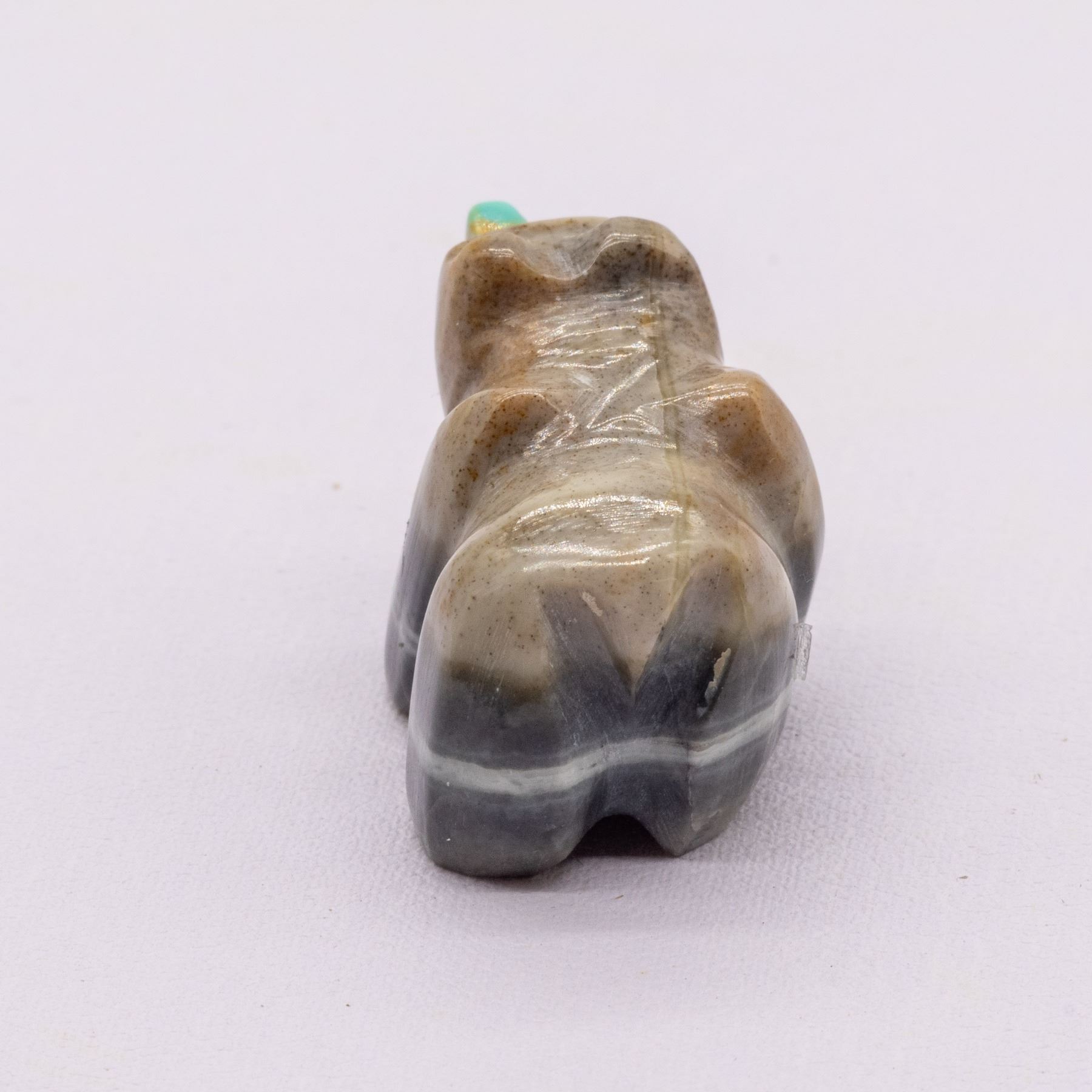 Native American Zuni Serpentine and Turquoise Bear Fetish by Leroy Ukestine, measures 1.25'' x .5''