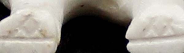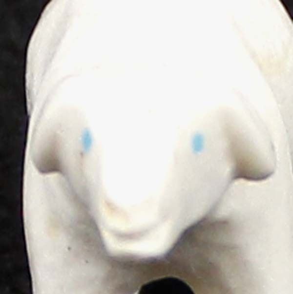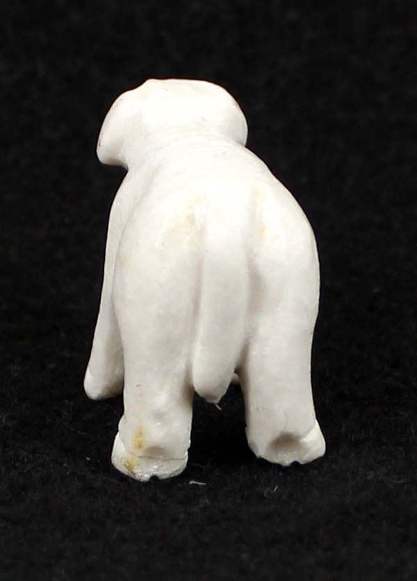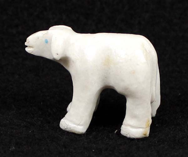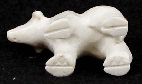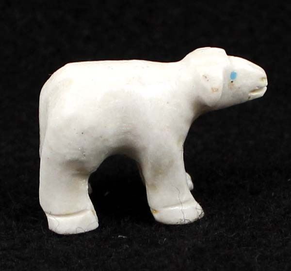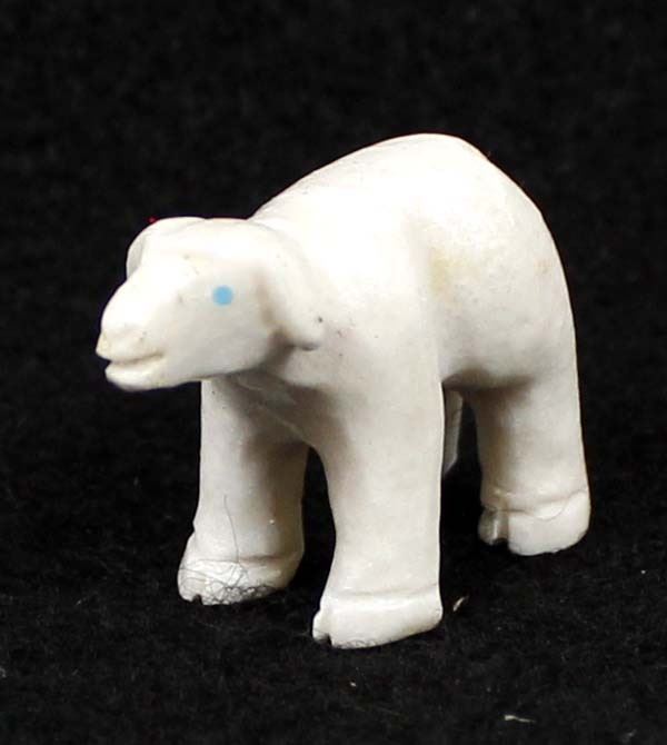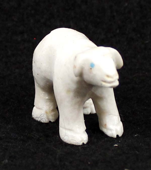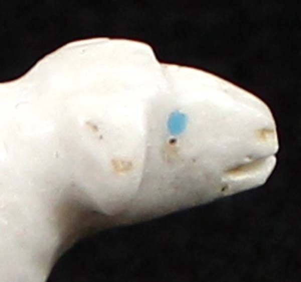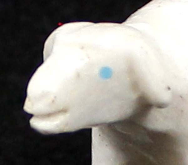 Native American Zuni White Marble Sheep Fetish by Bryston Bowannie, measures 1.25'' x .5'' x .25'' and has artist's initials on the bottom, turquoise eyes