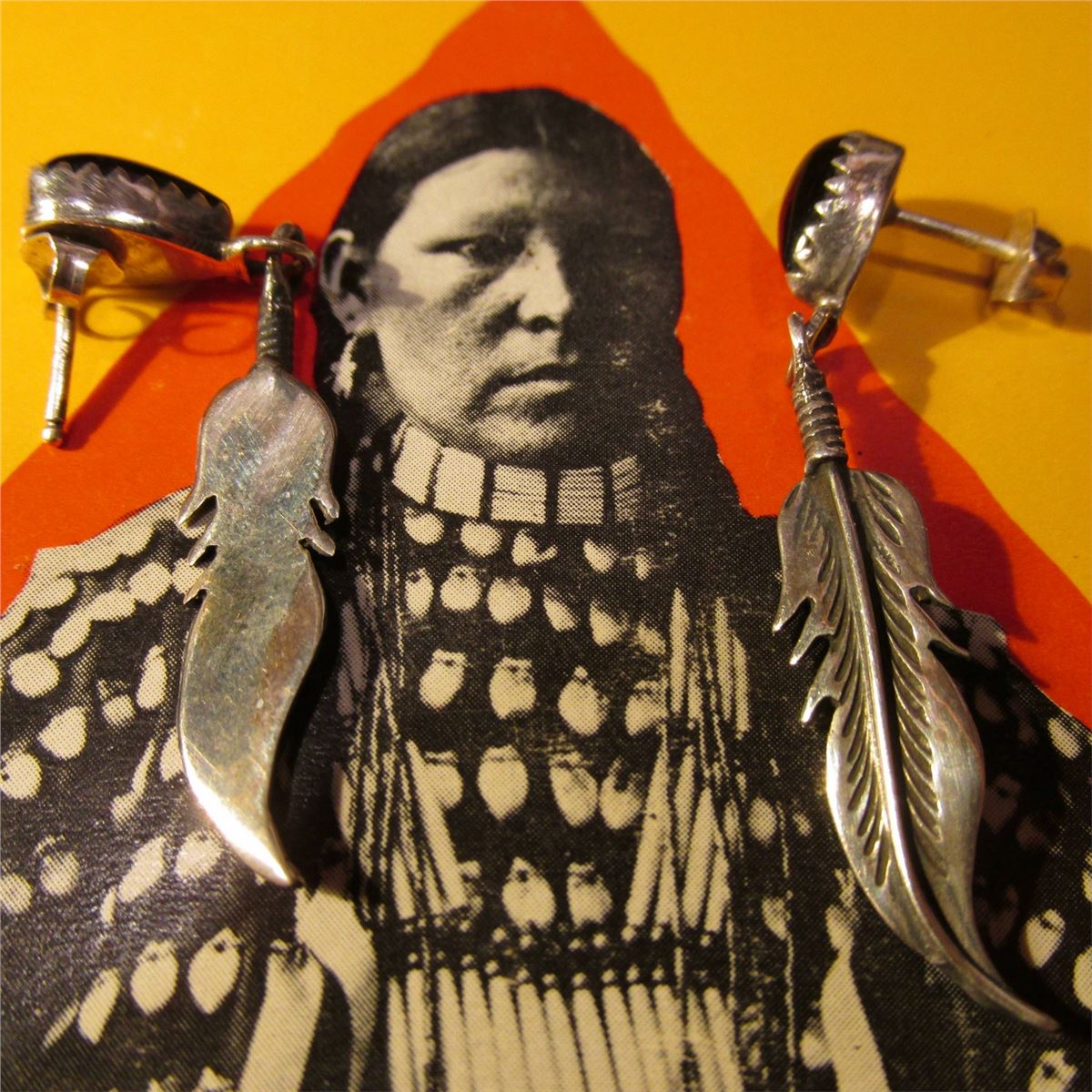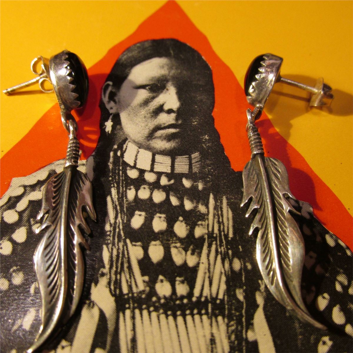 Zuni Silver Earrings for Pierced Ears with Black onyx. Leaf shaped.