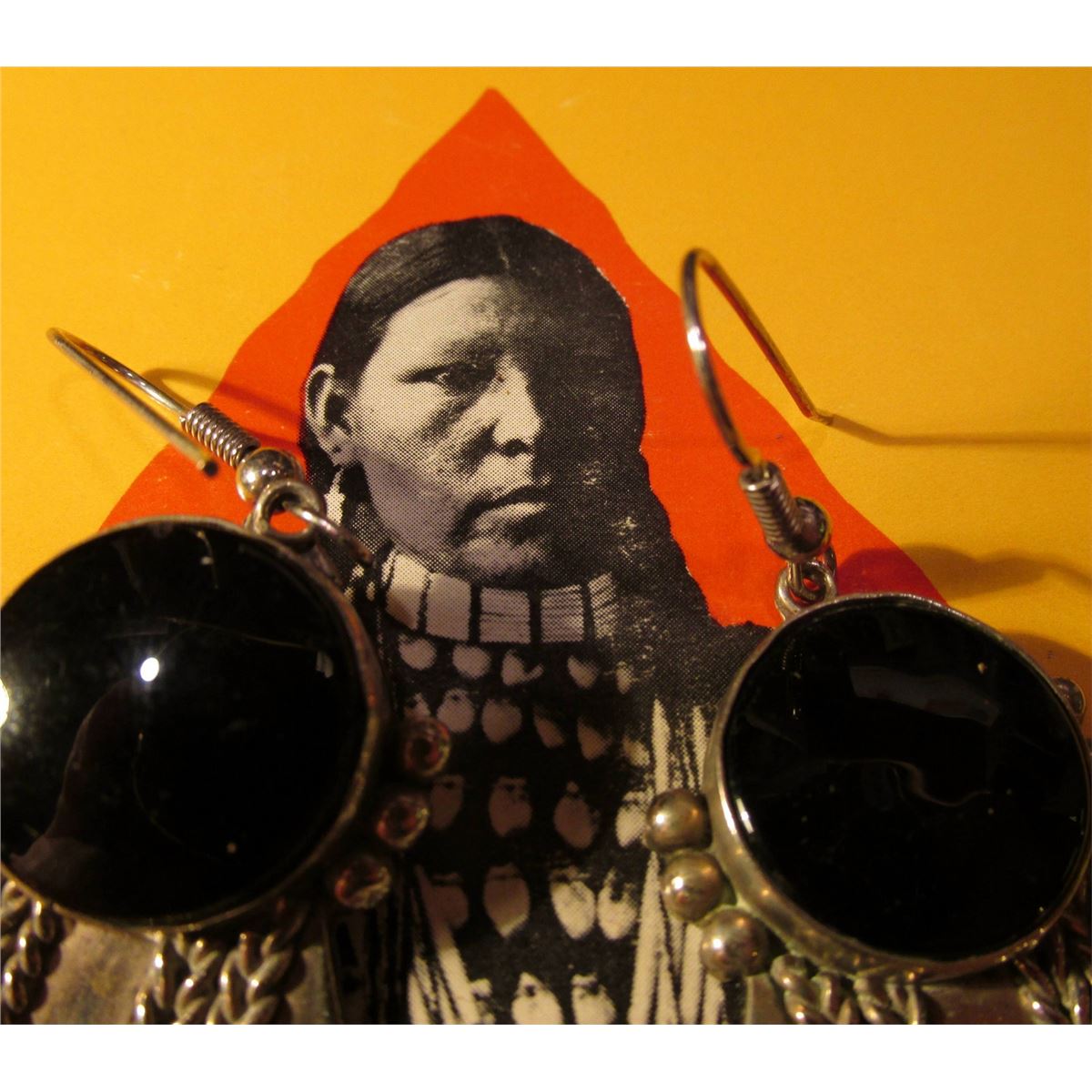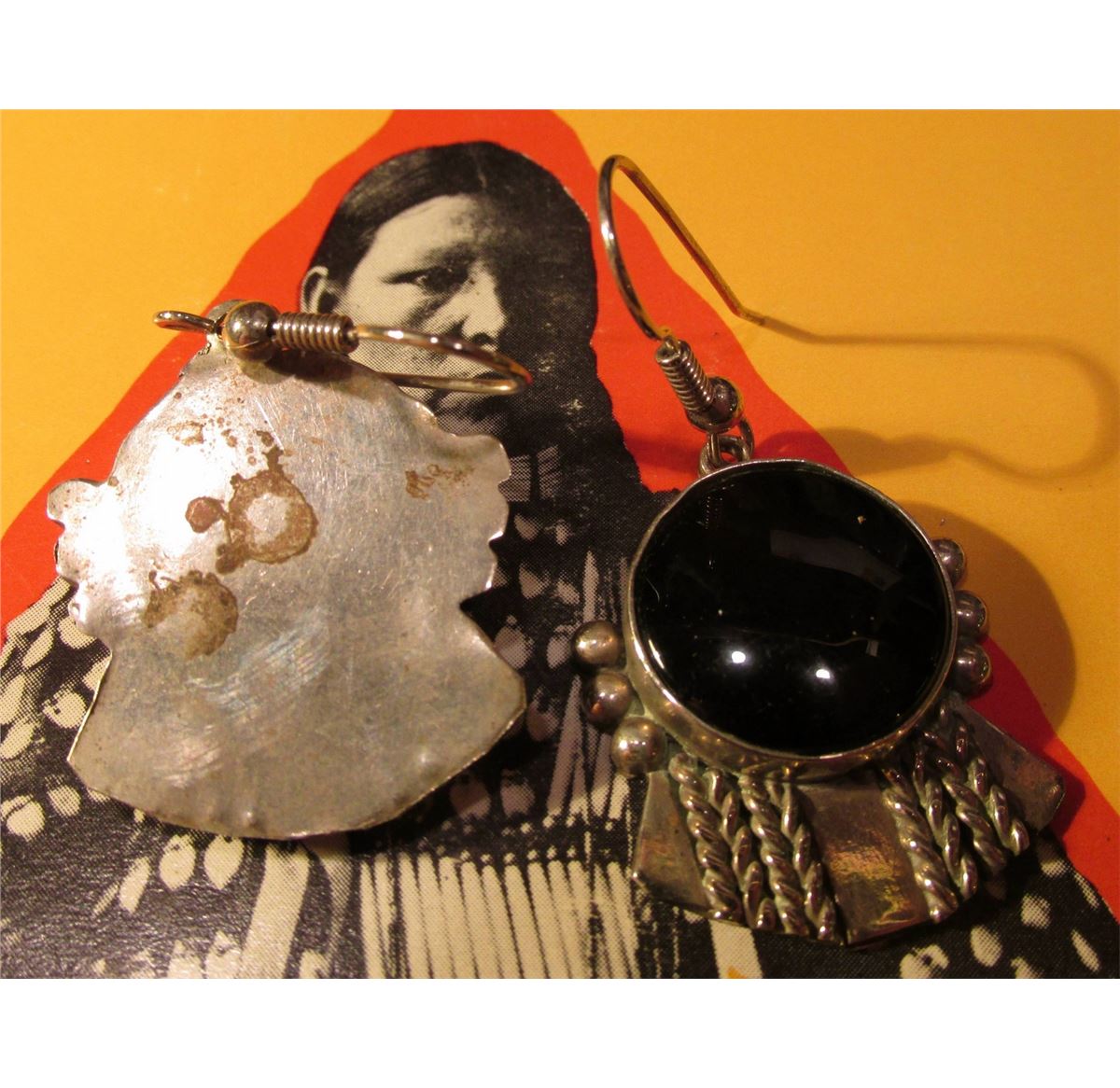Zuni Silver Earrings for Pierced Ears with Black onyx. Leaf shaped.