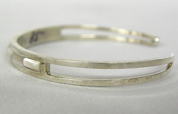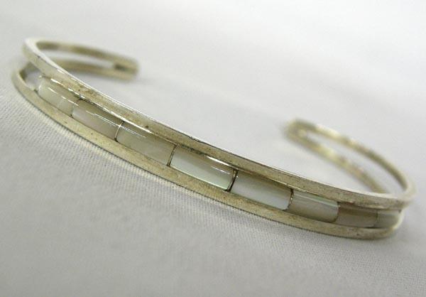 Zuni Silver Inlay Bracelet by ALW. Sterling silver, hallmarked ''ALW'', inlayed with Mother Of Pearl, measures approx. 6'' and width of 2/8"