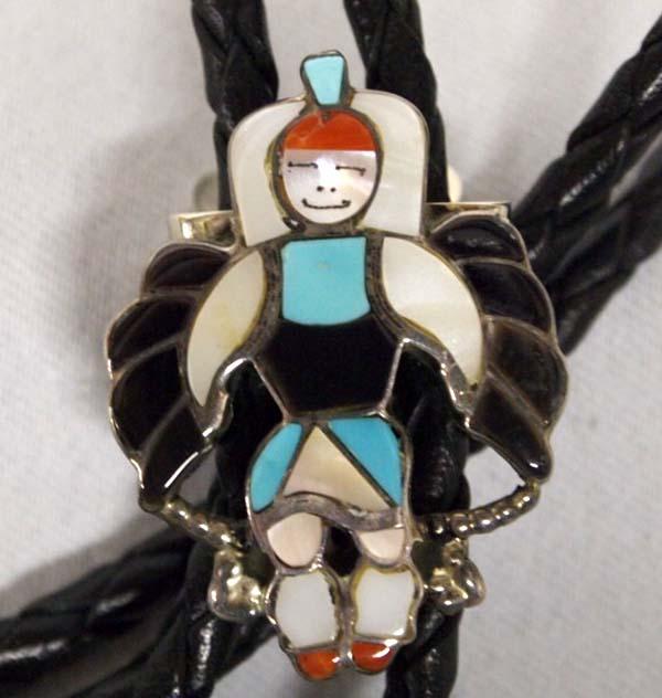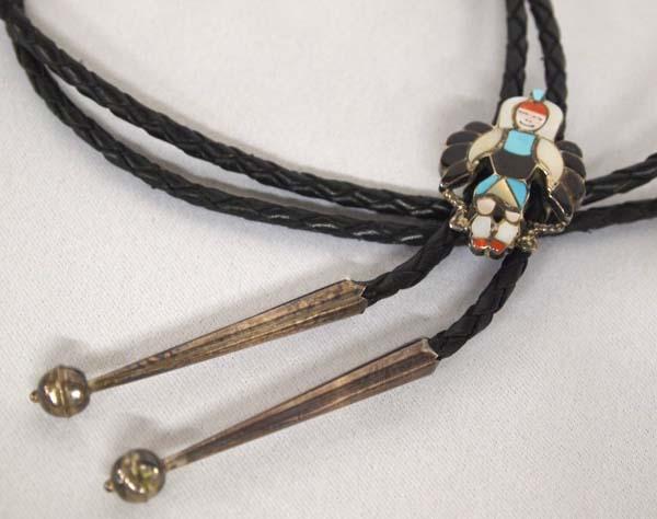 Zuni Silver Inlay Knifewing Bolo Tie by Beyuka. Slide measures approx. 1.25 x 1''. Has Sterling Silver Tips. SHI $15