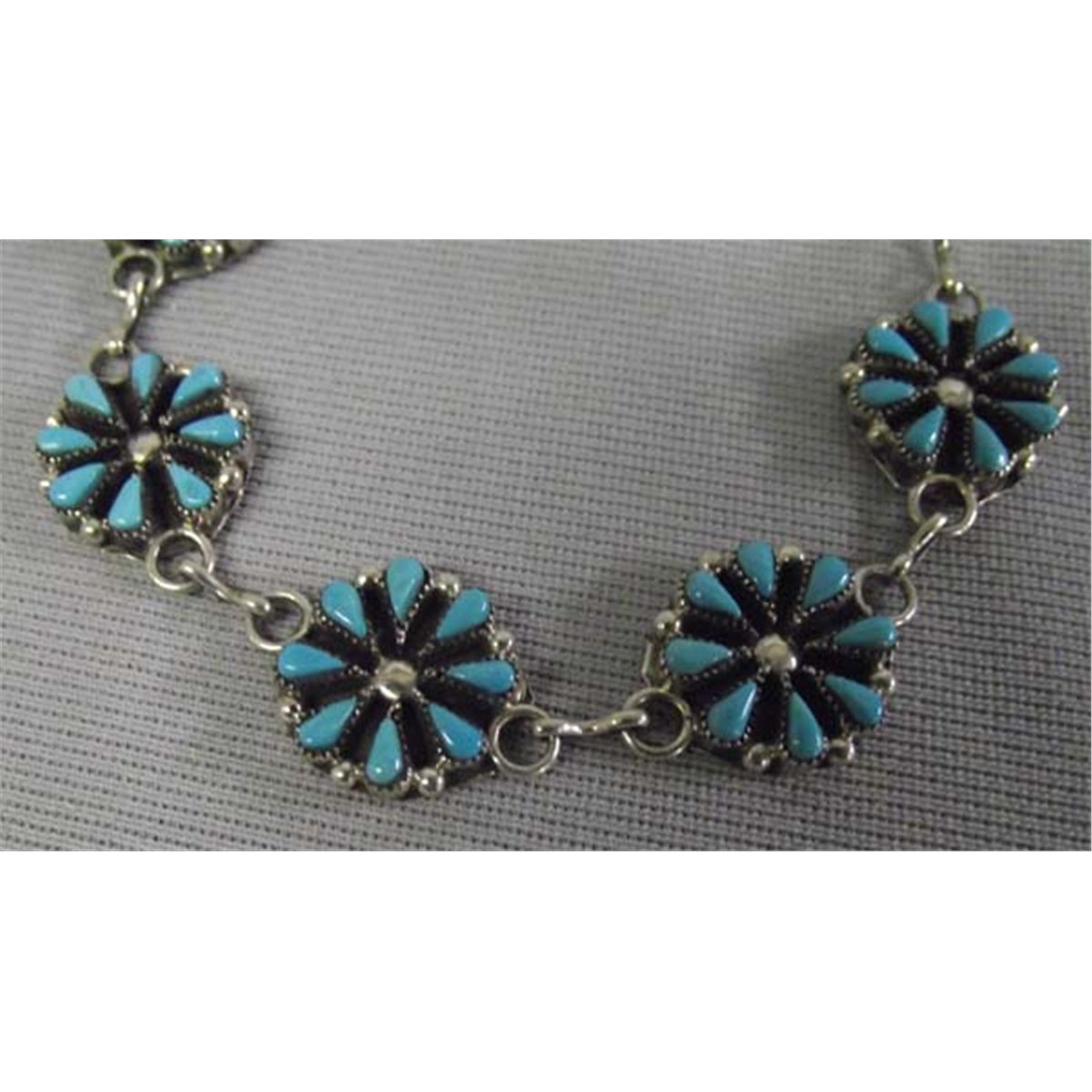 Native American Zuni Sterling Silver Petit Point Turquoise Chain Bracelet. Measures end to end approx. 7 1/2''L x 1/2''W. Buyers Pay Actual Shipping and Handling Charges(see terms and conditions for more information).