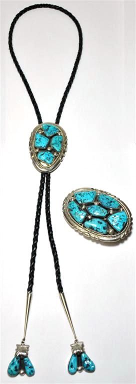 Zuni Sleeping Beauty Turquoise Sterling Silver Bolo & Buckle Set - Robert & Bernice Leekya