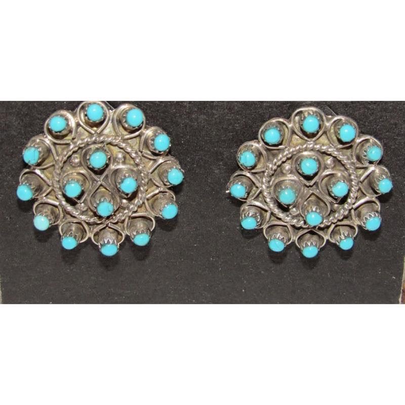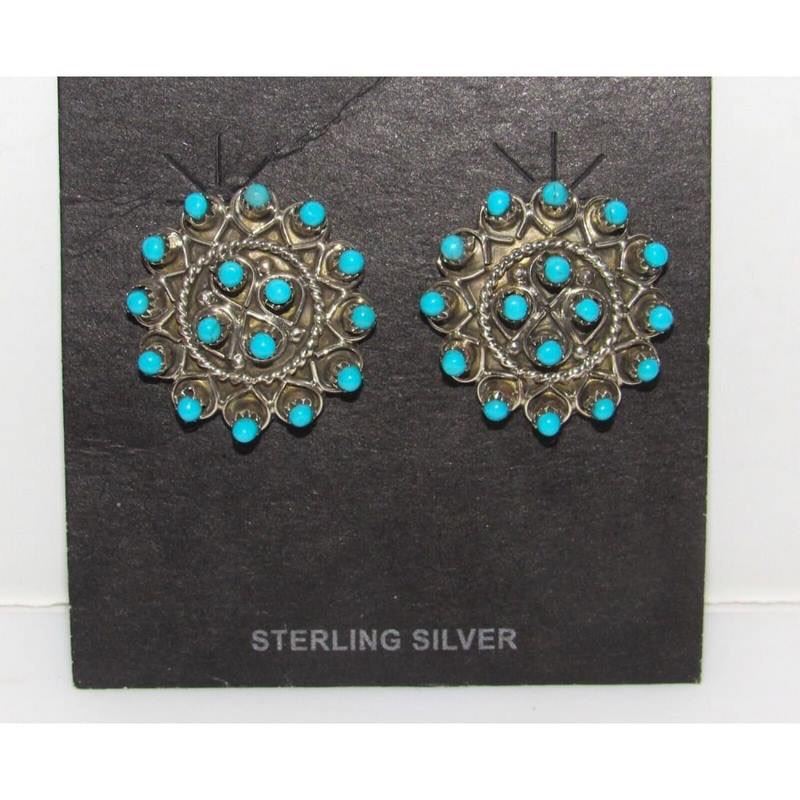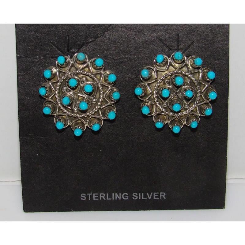 Stunning Zuni sterling silver and snake eye Sleeping Beauty mine turquoise post/stud earrings. The earrings measure about 1" in diameter. Traditional Zuni craftsmanship and beautiful turquoise stones from the Sleeping Beauty mine. Stunning classic Zuni earrings to add to any jewelry collection! FREE SHIPPING ON ALL JEWELRY ORDERS WITHIN THE US!