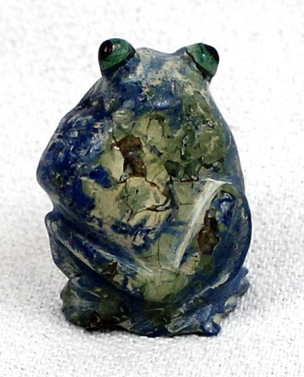 Native American Sodalite Frog Fetish by Ricky Laahty, measures .5'' x 1'' x .75'' and is signed on the bottom