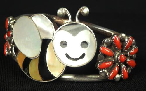 Zuni Sterling Bracelet with Bumble Bee design Signed D.V. Eriacho , Zuni, NM 2 1/4" x 1 3/4"