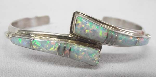 Native American Zuni Sterling Channel Inlay Opal Bracelet hallmarked ''R'', silver bead accents, stunning channelwork in Opal, measues approx. 6.5''inside x 5/8''W