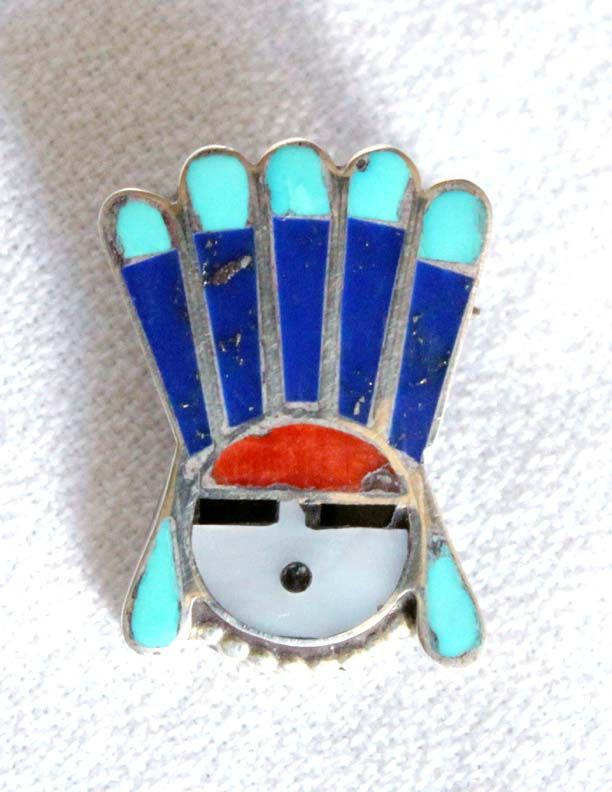 Zuni Sterling Channel and Stone to Stone Inlay Pin, measures 1''L x .5''W, stones included are lapis, turquoise, coral, and jet, 3.58g in total wt.