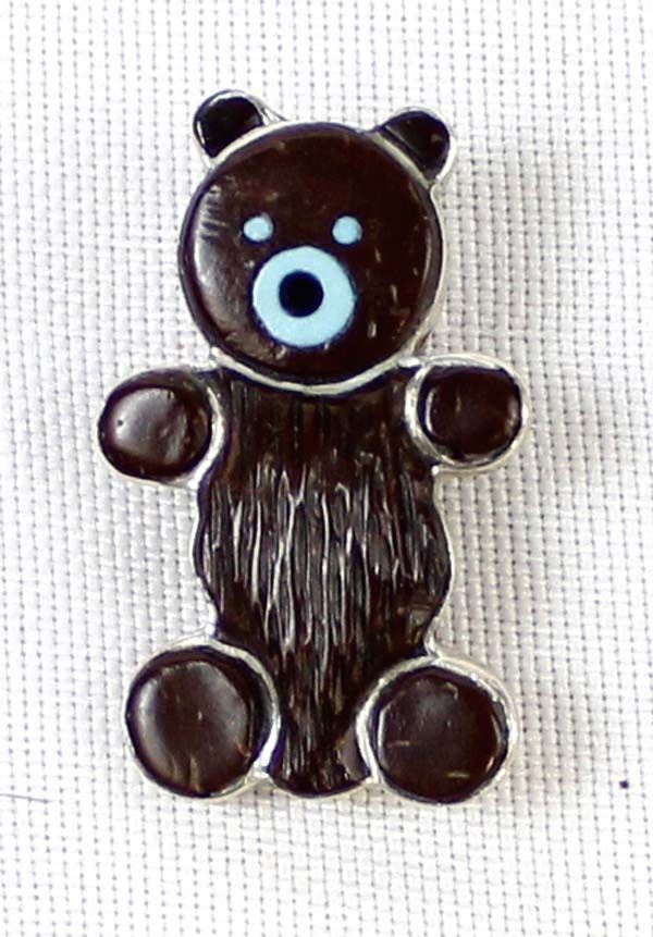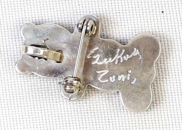 Zuni Sterling Inlay Bear Pin Pendant, E. Leekity