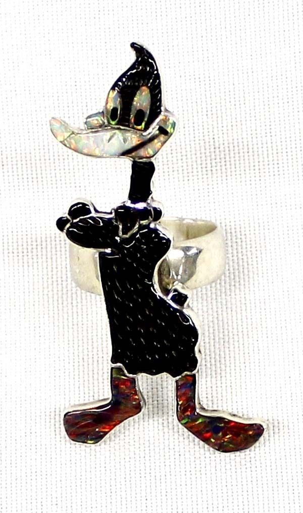 Zuni Sterling Inlay Daffy Duck Ring, Size 6.5