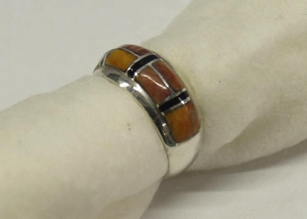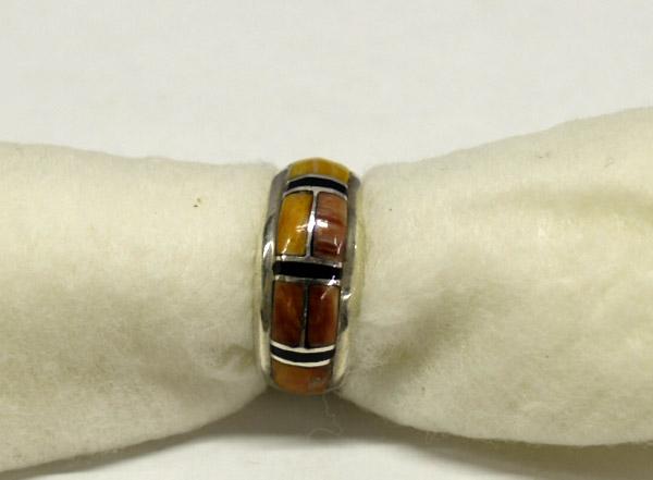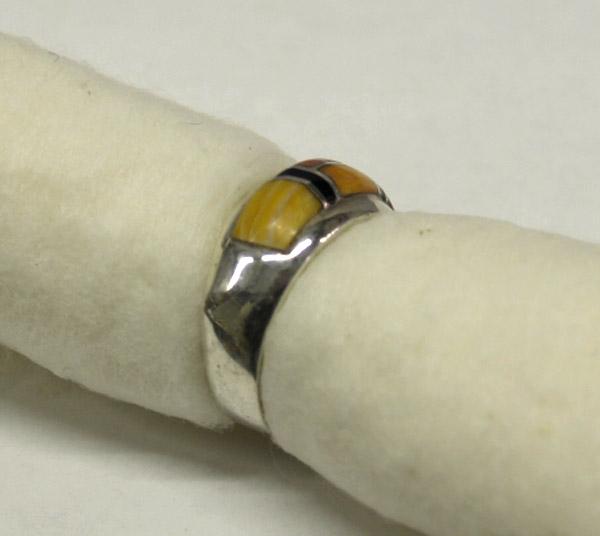 Zuni Sterling Inlay Jet & Shell Ring. Hallmark and ''sterling'' stamped on inside. Size 10.