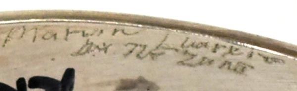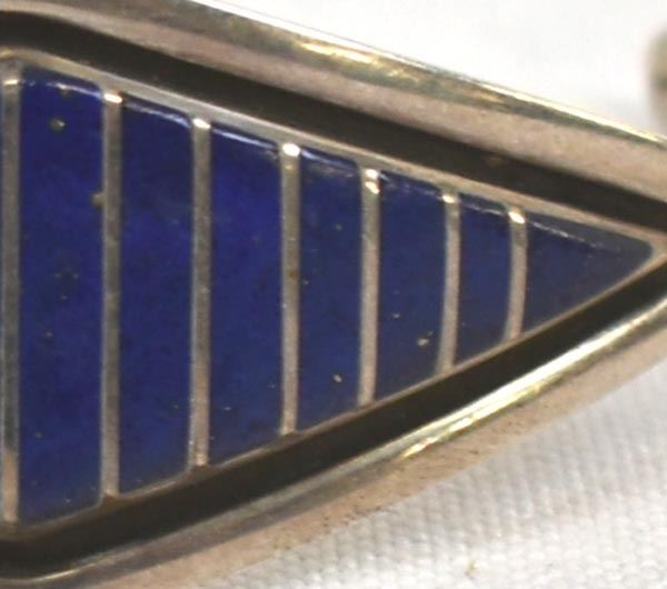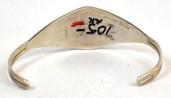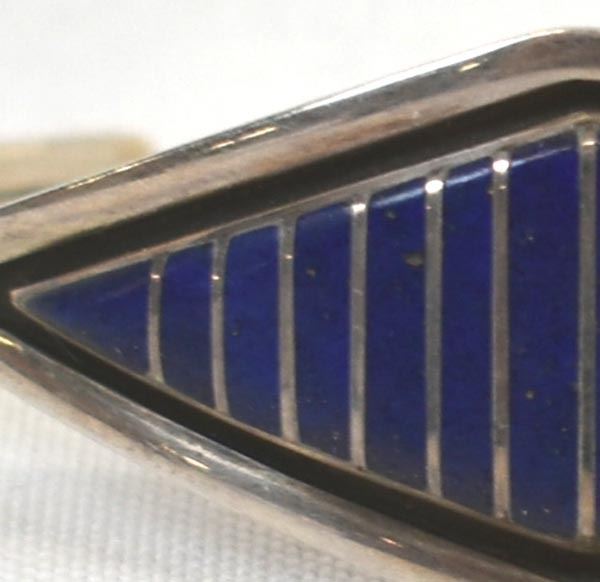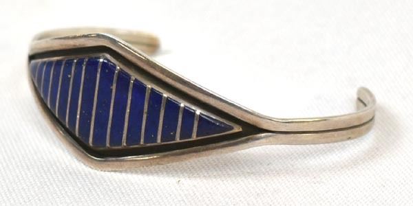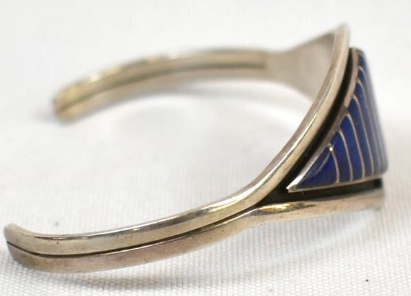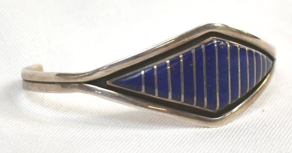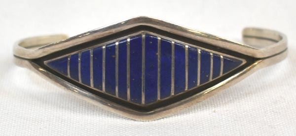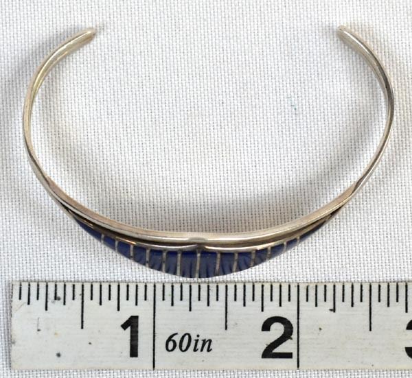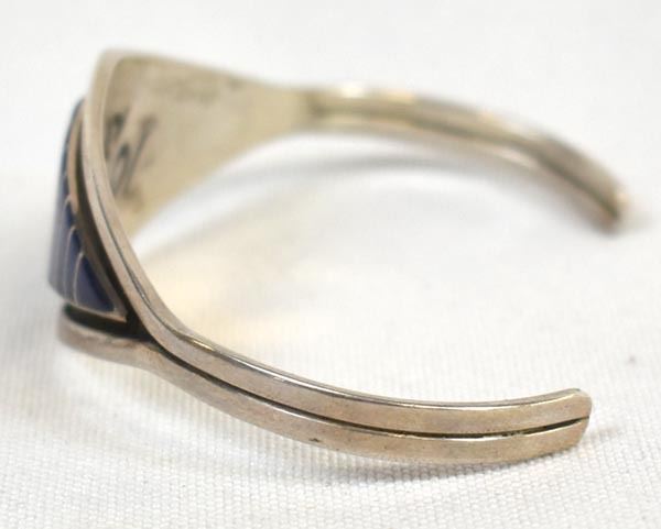 Native American Zuni Sterling Inlay Lapis Bracelet by Marvin Luarkie, inside measures 6.5'' which includes the gap x 7/8''W, engraved signature on the back