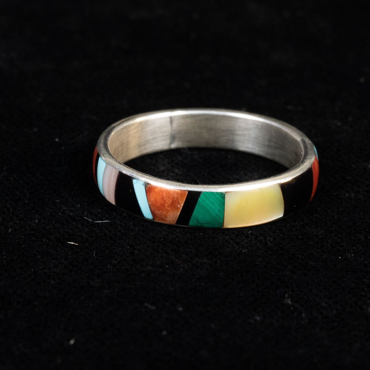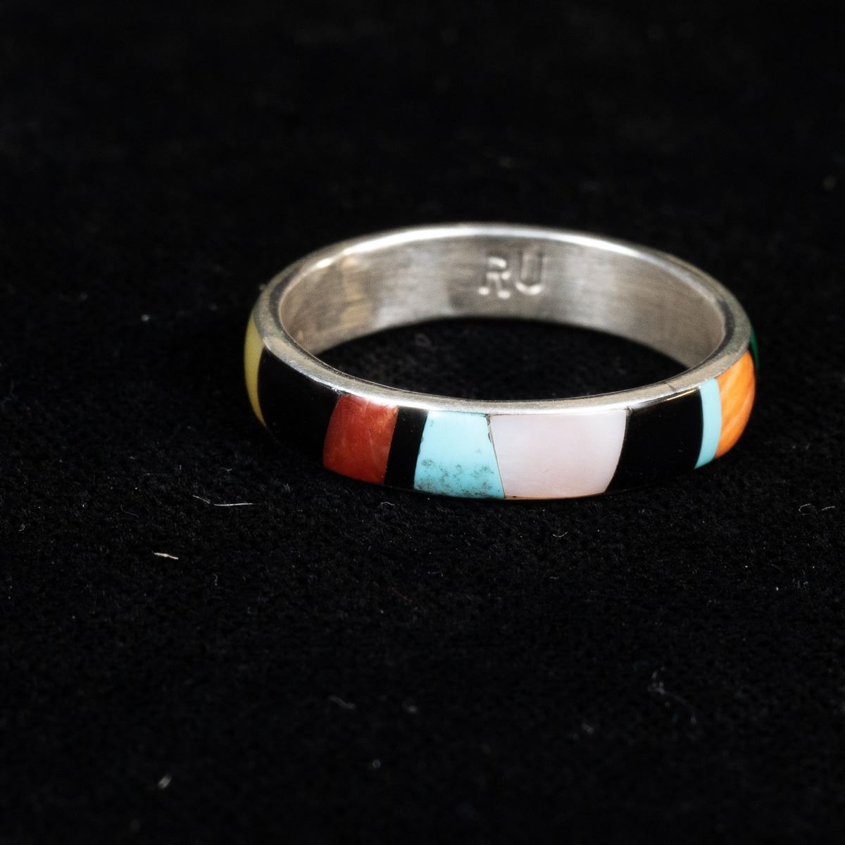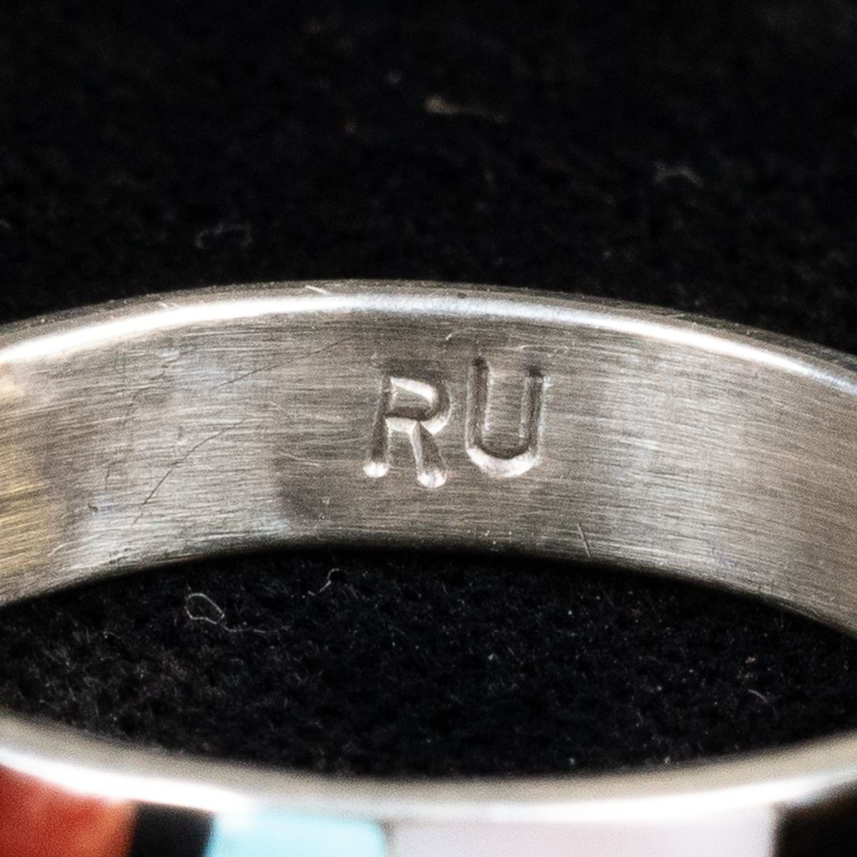 Native American Zuni Sterling Inlay Ring by Rose Ukestine, size 11 and measures .25''W, hallmarked