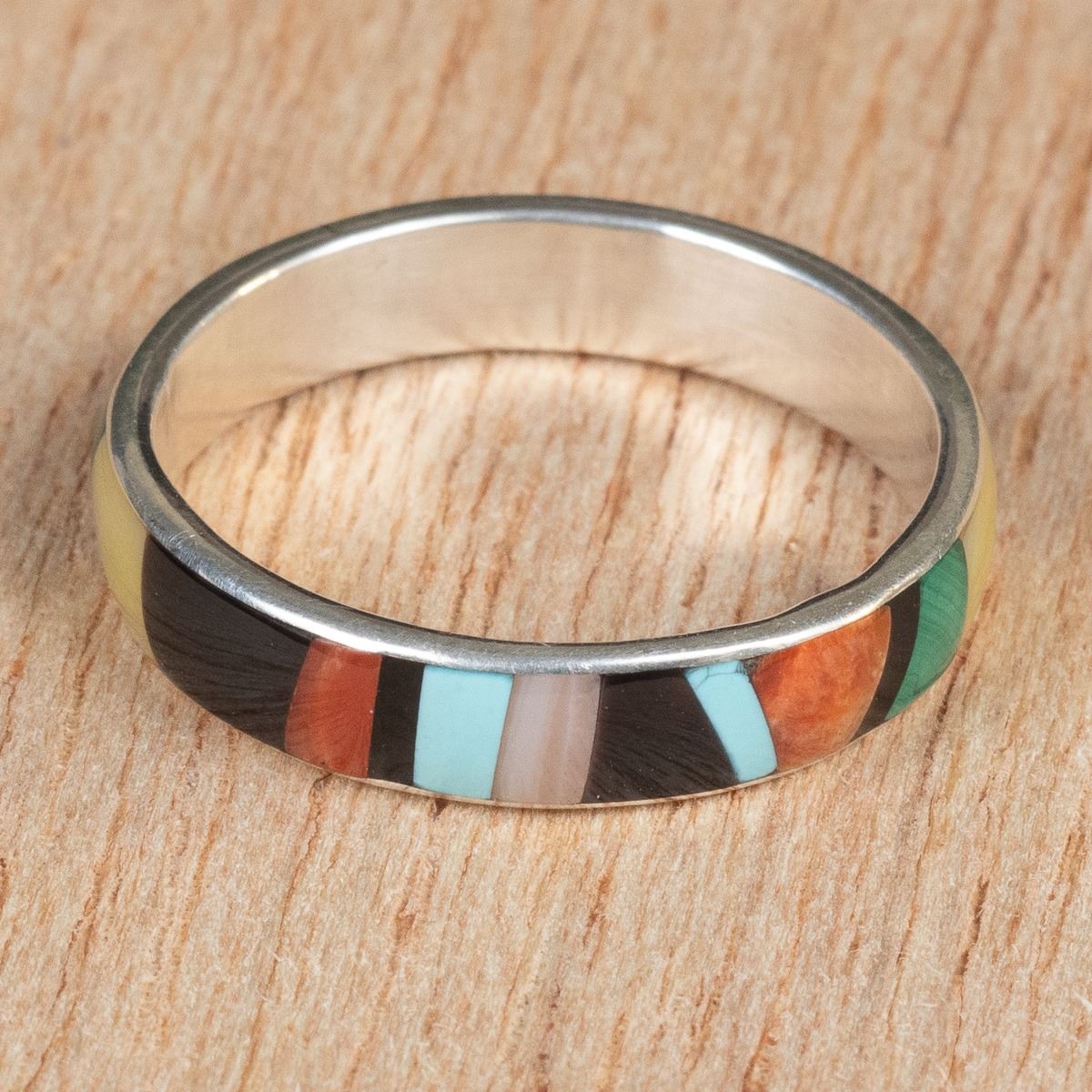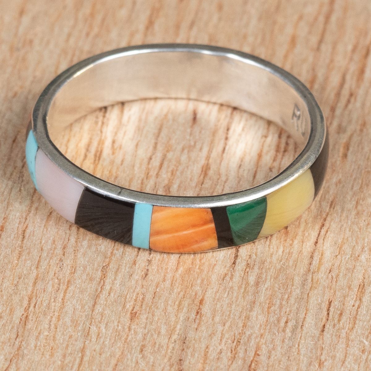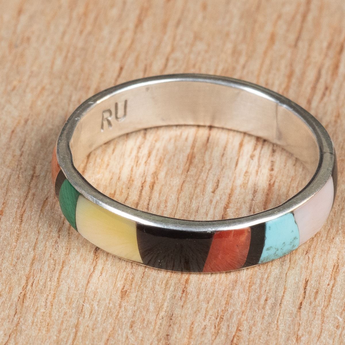 Native American Zuni Sterling Inlay Ring by Rose Ukestine, size 11 and measures .25''W, hallmarked