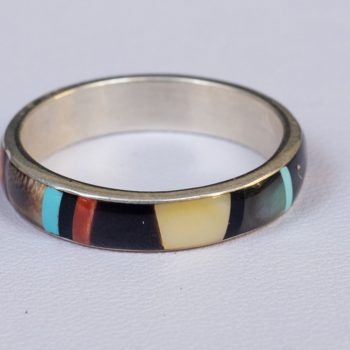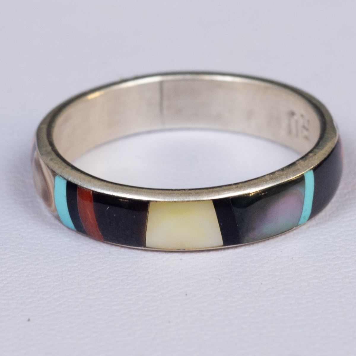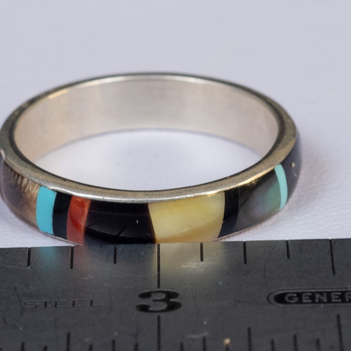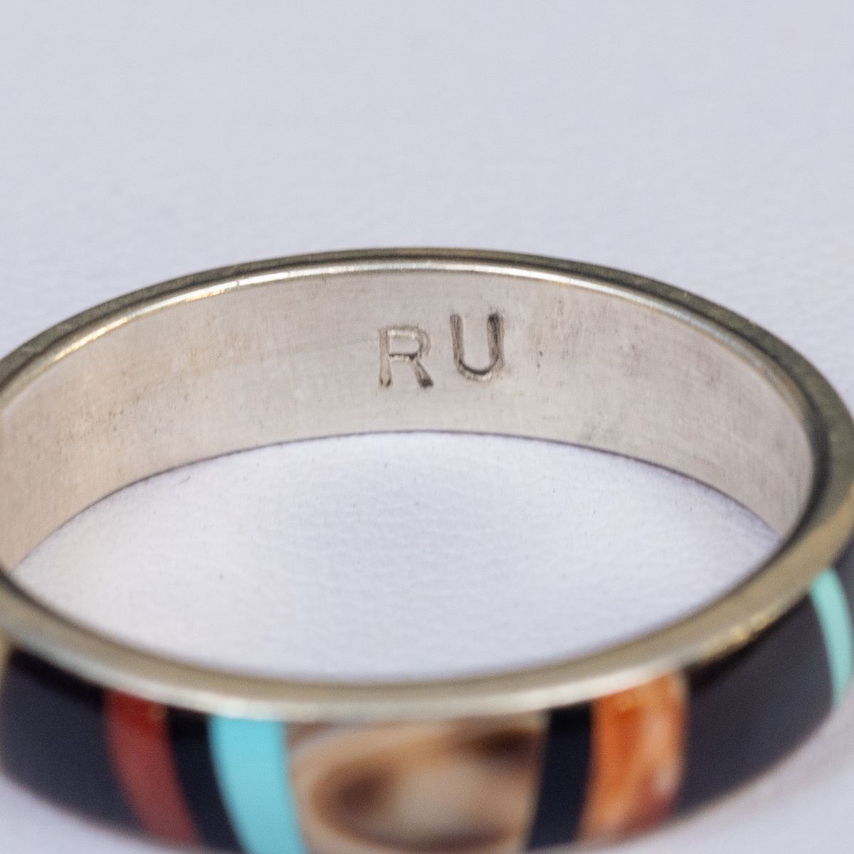 Native American Zuni Sterling Inlay Ring by Rose Ukestine, size 10 and measures .25''W, hallmarked RU