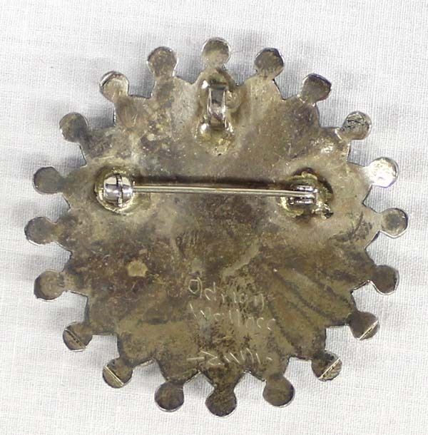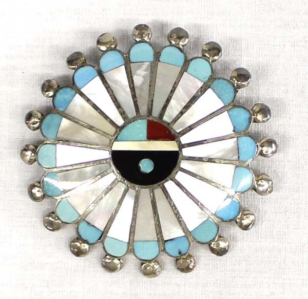 Zuni Sterling Inlay Sun Face Pin Pendant, Wallace