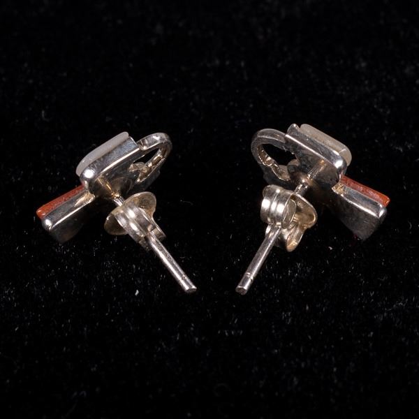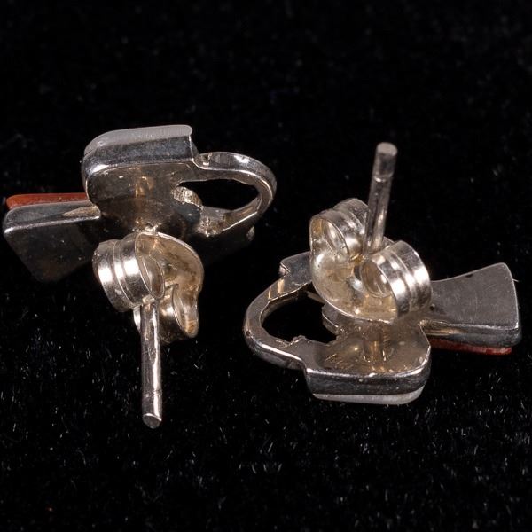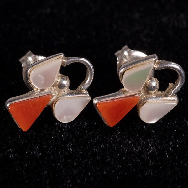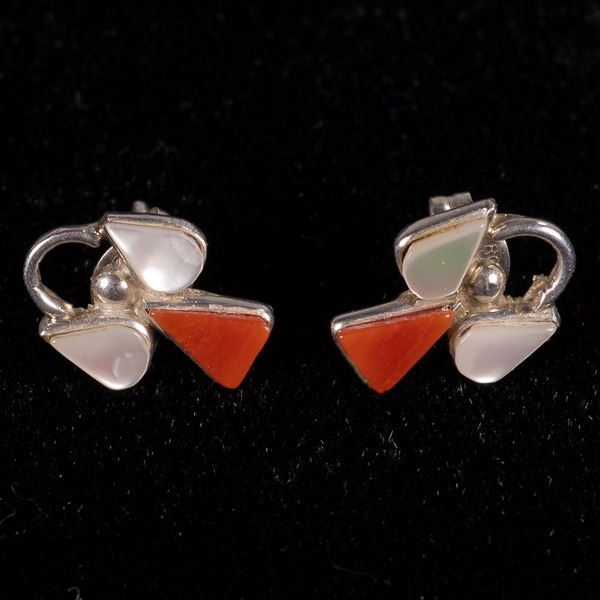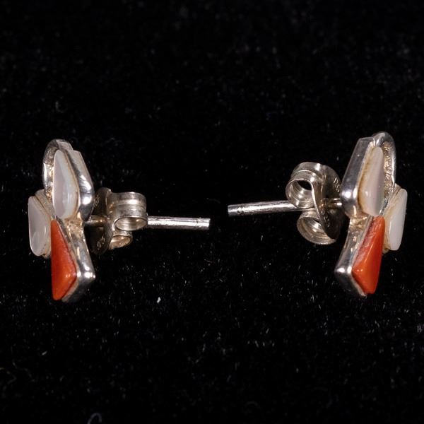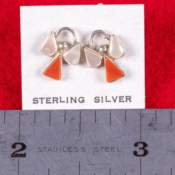 Native American Zuni Sterling Coral and Mother of Pearl Angel Earrings, measure .5''L