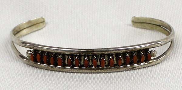 Zuni Sterling Needlepoint Coral Bracelet, Johnson
