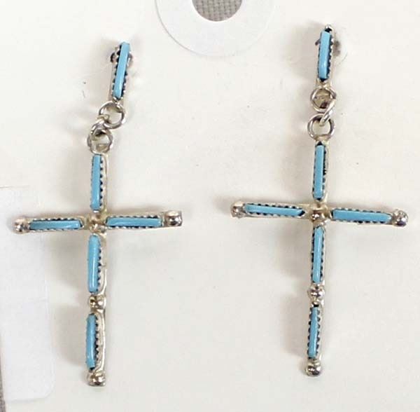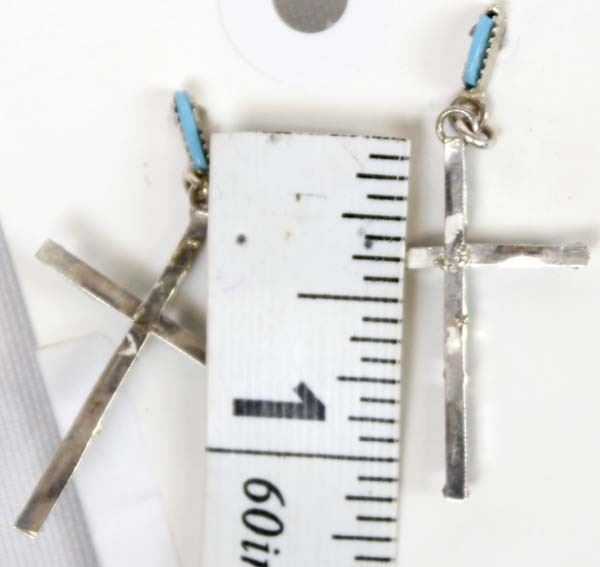 Native American Zuni Sterling Needlepoint Turquoise Earrings, measure 1.75''L x 7/8''W
