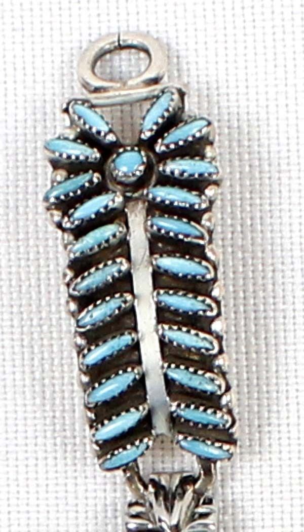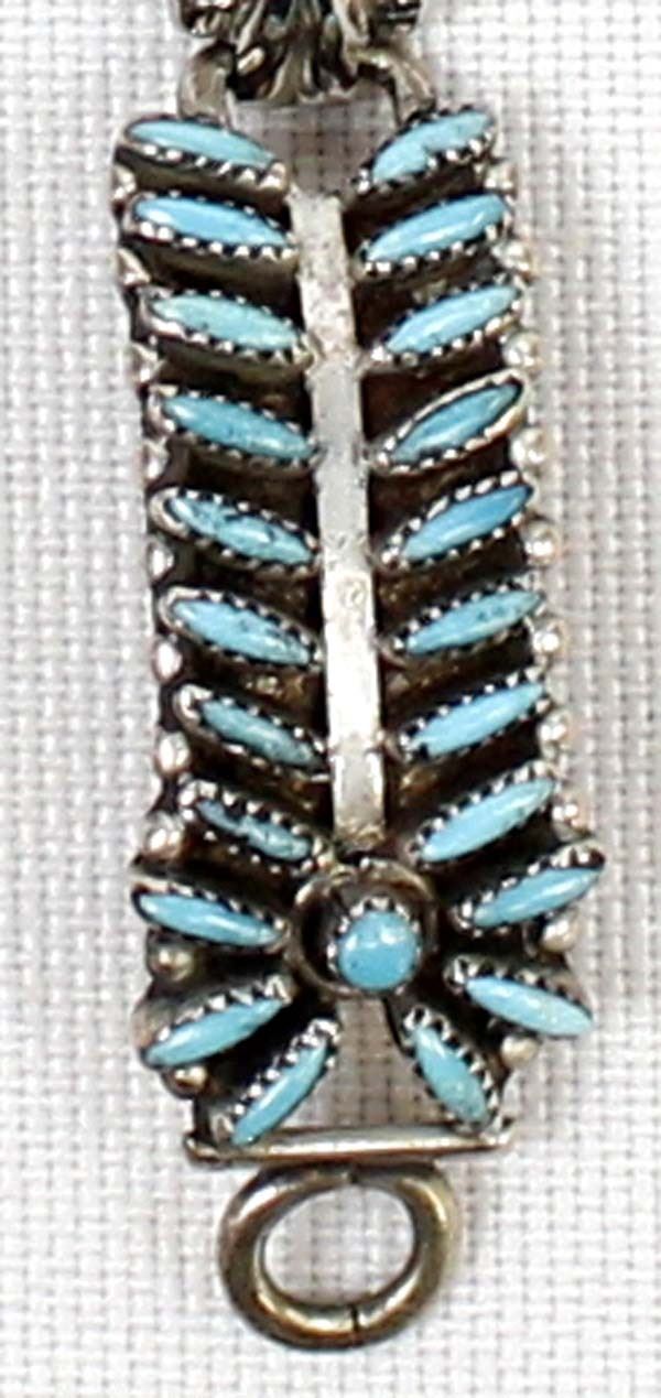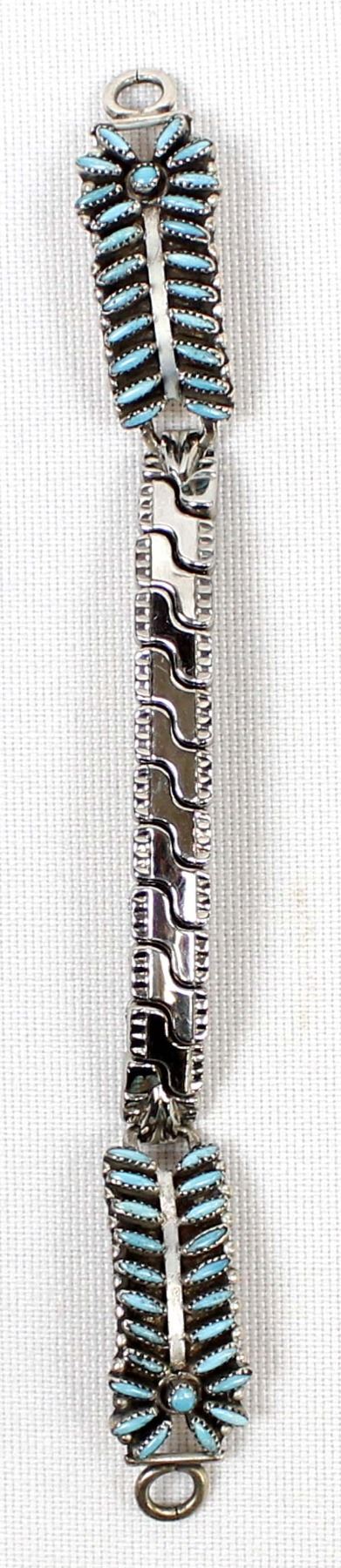 Native American Zuni Sterling Needlepoint Turquoise Watch Band, tips measures 1.25''L x .5''W, beautiful watch band