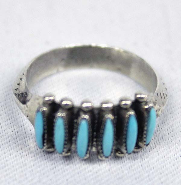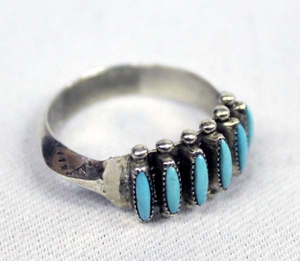 Zuni Sterling Petit Point Ring by Janice Paloma, measures SZ 8 inside measurement not including space. Ring Measures approx. 7/8L x 3/8W. Weighs 3.8gr