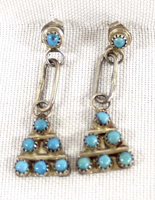 Native American Zuni Sterling Petit Point Turquoise Earrings, measure 1 3/8''L
