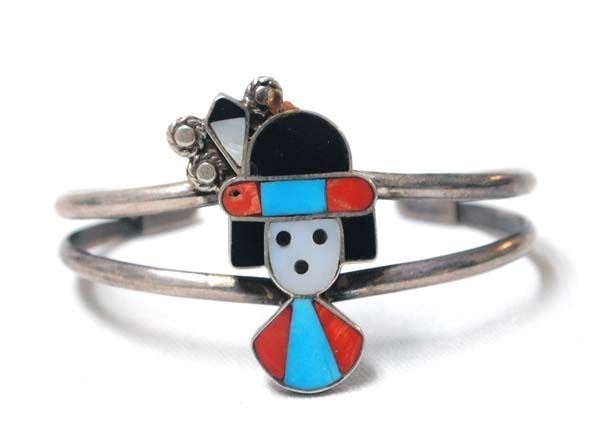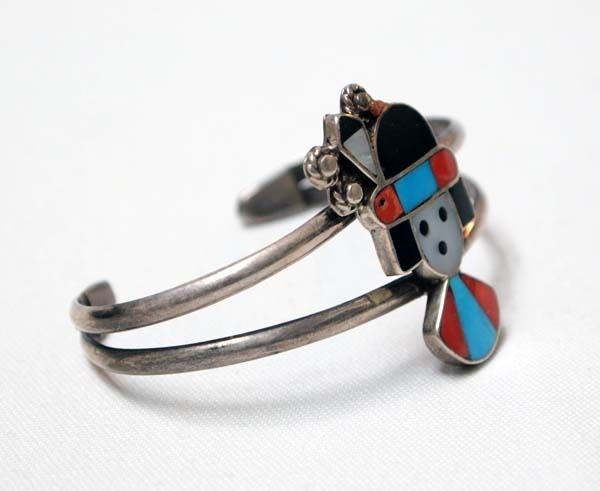 Native American Zuni Sterling Silver & Channel Inlay Bracelet, inside measures 5.5'' which includes opening x 1''W