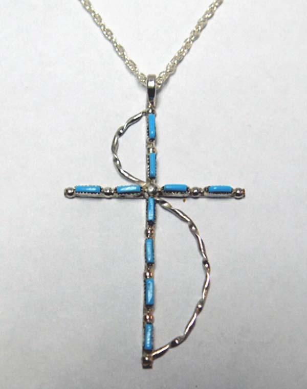 Zuni Sterling Silver Cross Necklace, measures end to end approx. 24'' L with a cross pendant that measures 2.5x1.5''. SHI $15