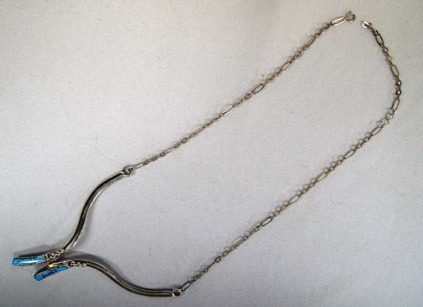 Native American Zuni Sterling Silver and Inlay Opal Necklace, stamped .925, hallmarked FT along with a teepee, hand wrought chain measures 19'' end to end and pendant section is 2''L, 20g in total wt.