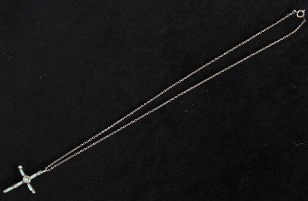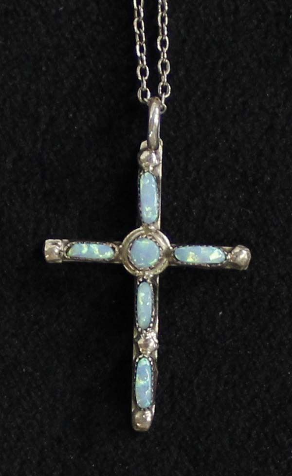 Beautiful Native American Zuni Sterling Silver & Opal Cross Pendant Necklace, sterling chain measures 18''L end to end and cross pendant measures 1.5''L