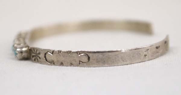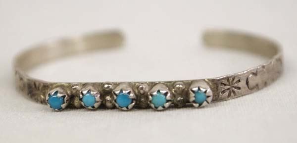 Native American Zuni Sterling Silver Petit Point Child's Bracelet, vintage sterling silver bracelet with petit point Bisbee Blue Turquoise cabochons, 3.28g in total wt.