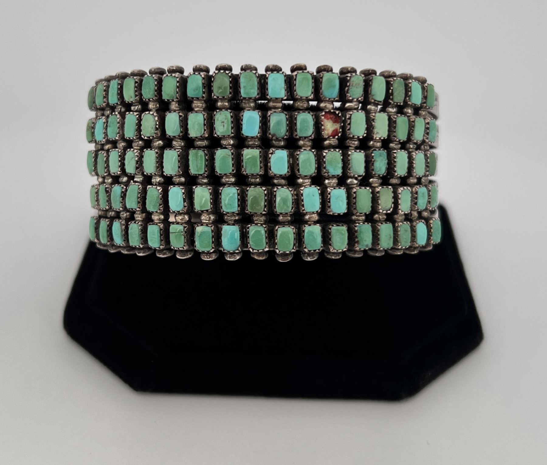 Missing a small stone as shown. Nice old bracelet.