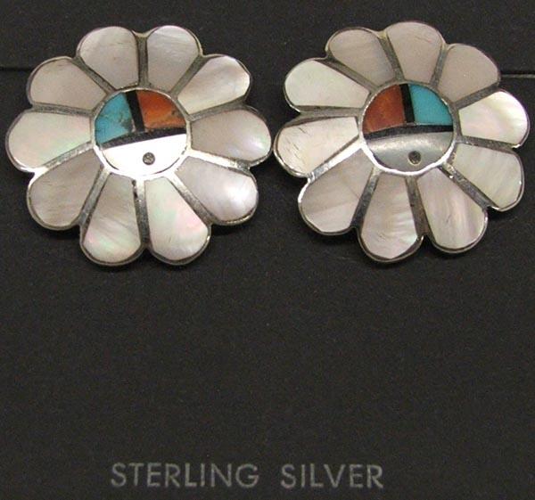 Zuni Sterling Sun Face Inlay Earrings, measures approx. 1'' in diameter. SHI $15.