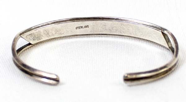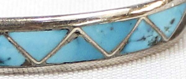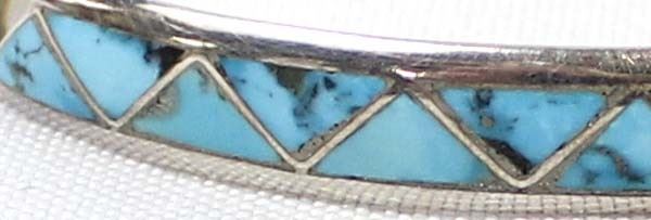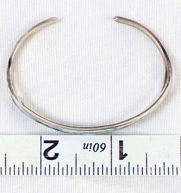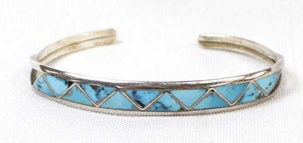 Native American Zuni Sterling Turquoise Inlay Bracelet, inside measures 6'' which includes the gap x .25''W, stamped sterling