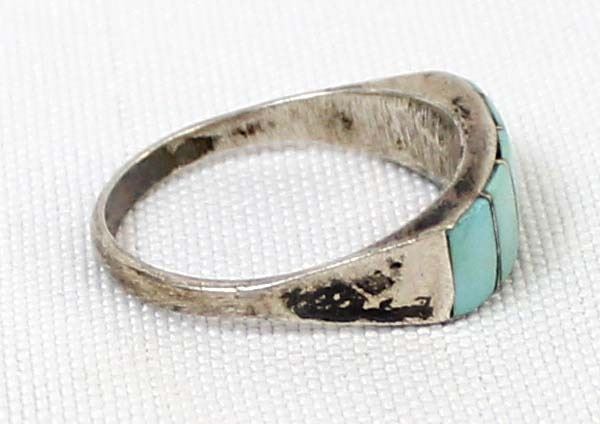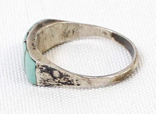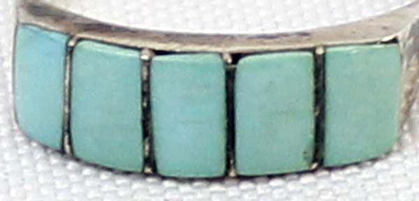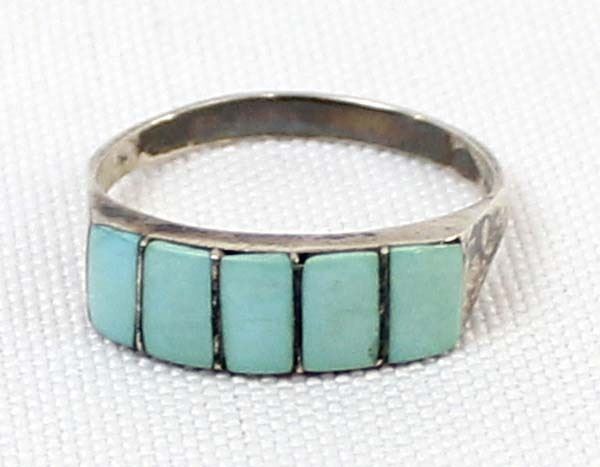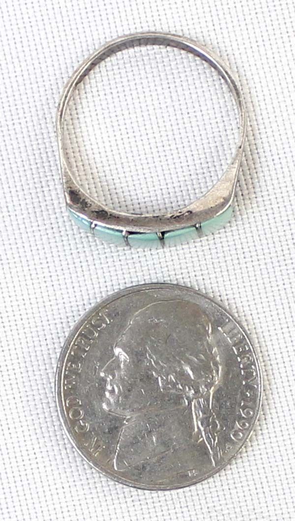 Native American Zuni Sterling Turquoise Inlay Ring, Size 8, measures .25''W