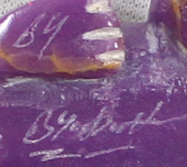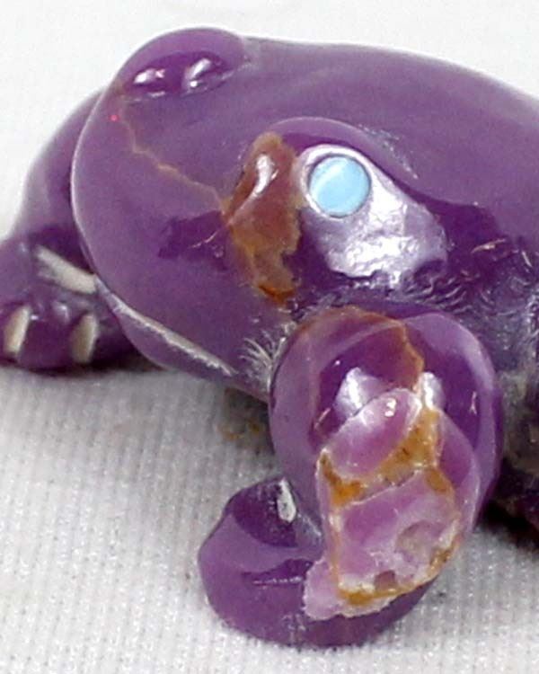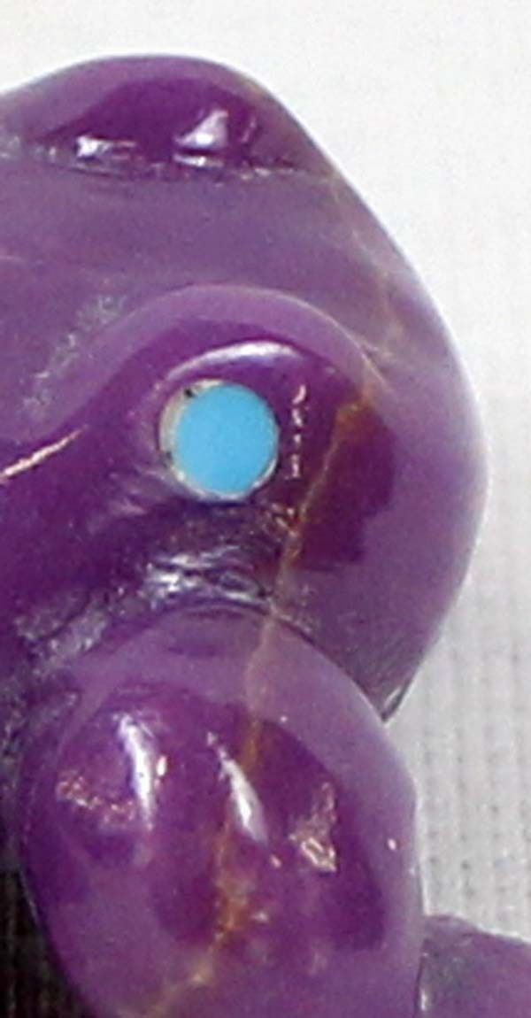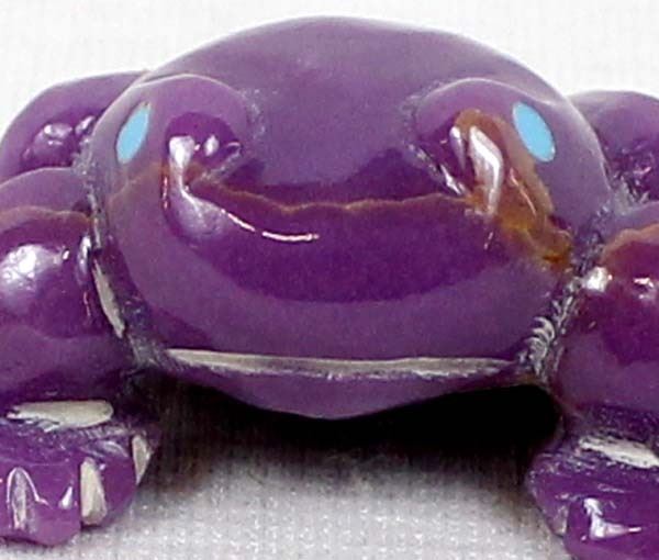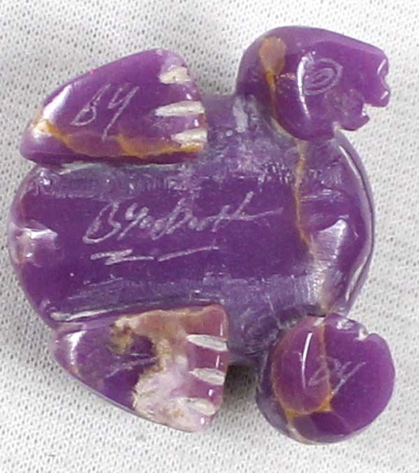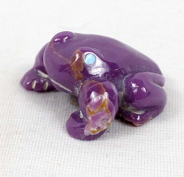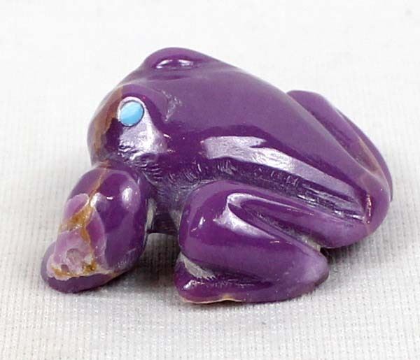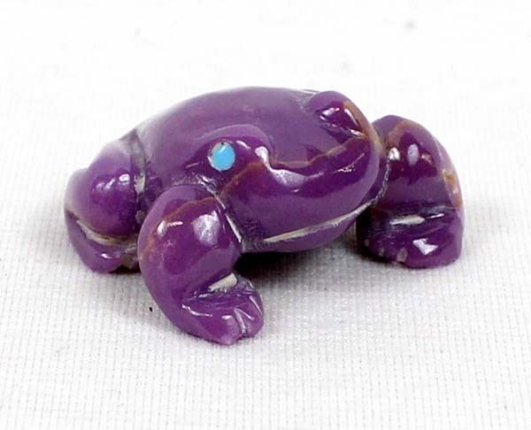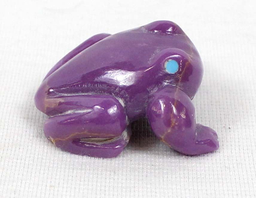 Native American Zuni Stichtite Frog Fetish by Brian Yatsattie, measures 1.5'' x 1'' x .5'' and is signed on the bottom, turquoise eyes