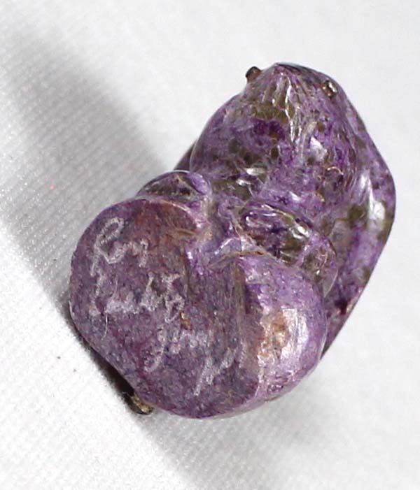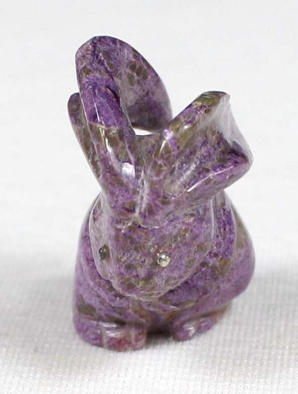 Native American Zuni Stichtite Rabbit Fetish by Ron Laahty, measures 7/8''W x 1''L x 1.25''H and is signed on the bottom, beautiful color