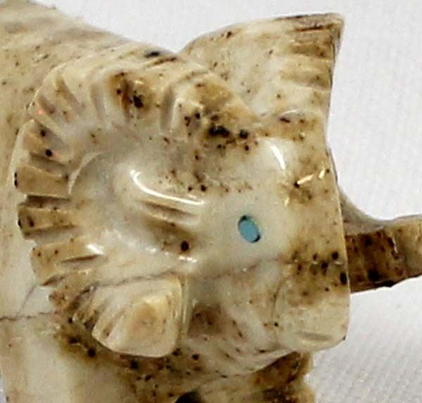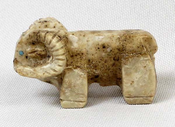 Native American Zuni Stone Ram Fetish by Dave Cooeyate, measures 1'' x 1.5'', anatomically correct and has turquoise eyes
